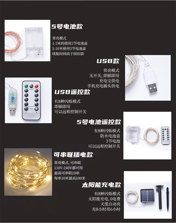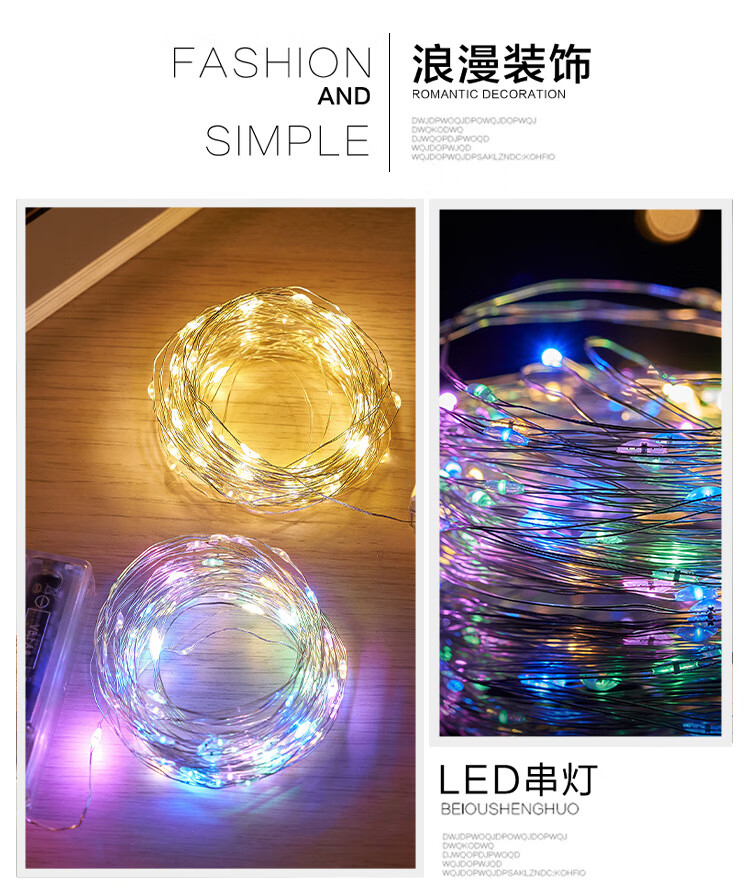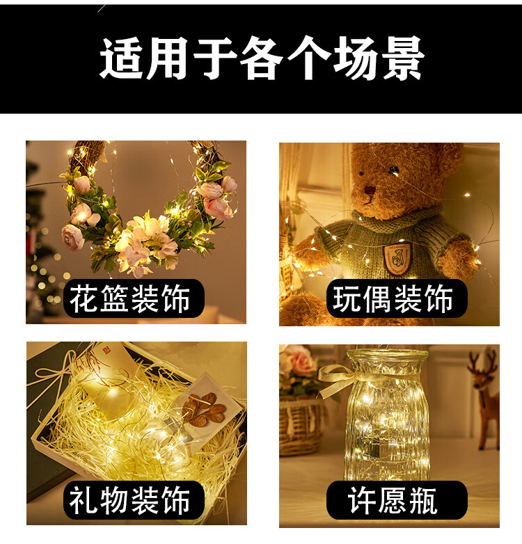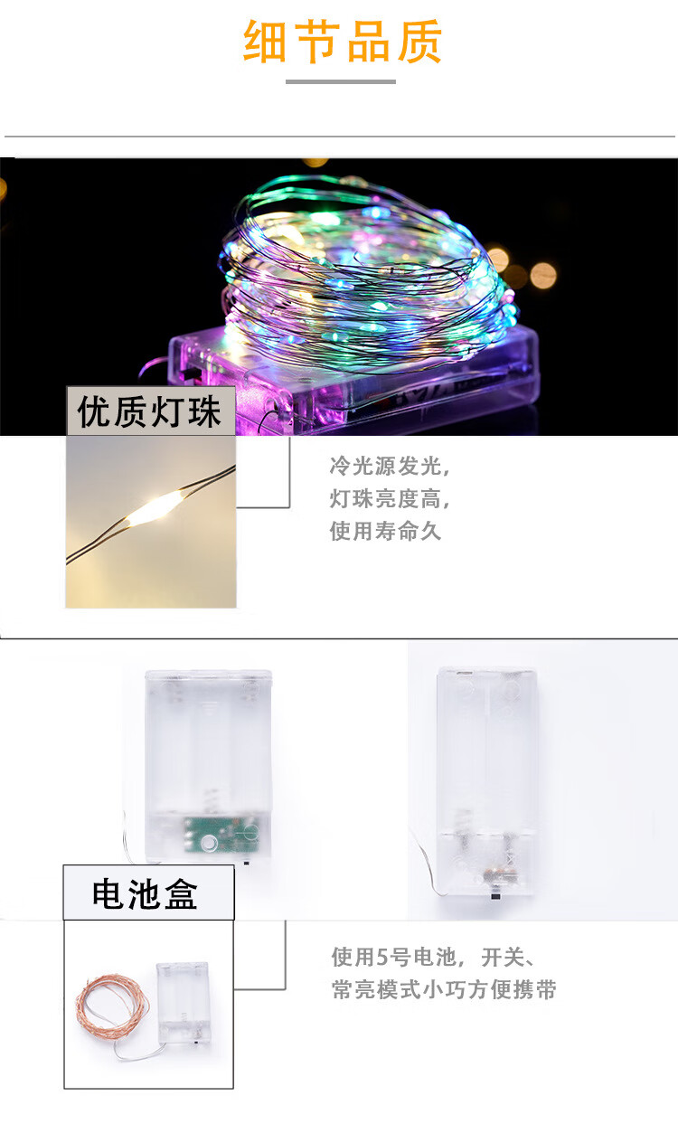 馨圣颐led电池铜线小彩灯氛围灯条闪灯串灯珠生日装饰满天星星灯花环灯 暖光 【usb款+常亮】5米50灯