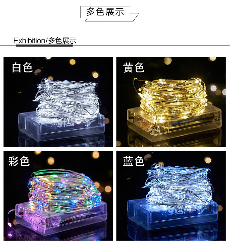 贾恩斯led小彩灯闪灯串灯灯条带铜线装饰气球鲜花灯笼电子灯生日蛋糕灯 3只 炫彩2米20灯【自带电池】