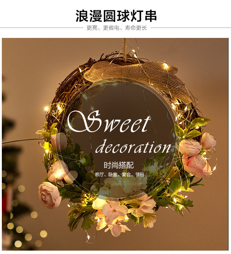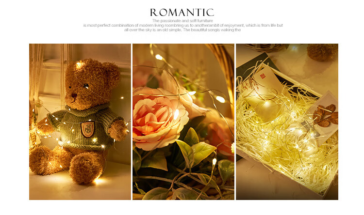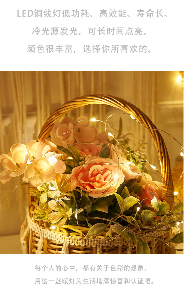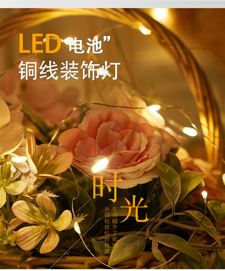 别颖LED闪烁灯串鲜花蛋糕花束礼盒灯派对气球夜市彩灯装饰氛围彩带 暖白【三档开关含电驰】 1米10灯【5个】