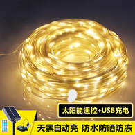 暮瑾太阳能led小彩灯闪灯串灯带户外家用庭院防水节日装饰霓虹灯树灯 50米暖色(太阳能遥控+USB充电)