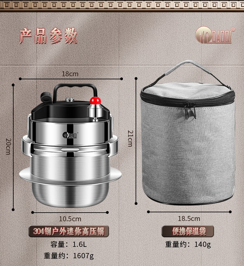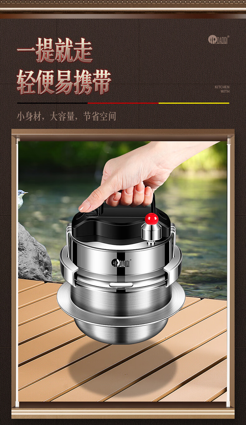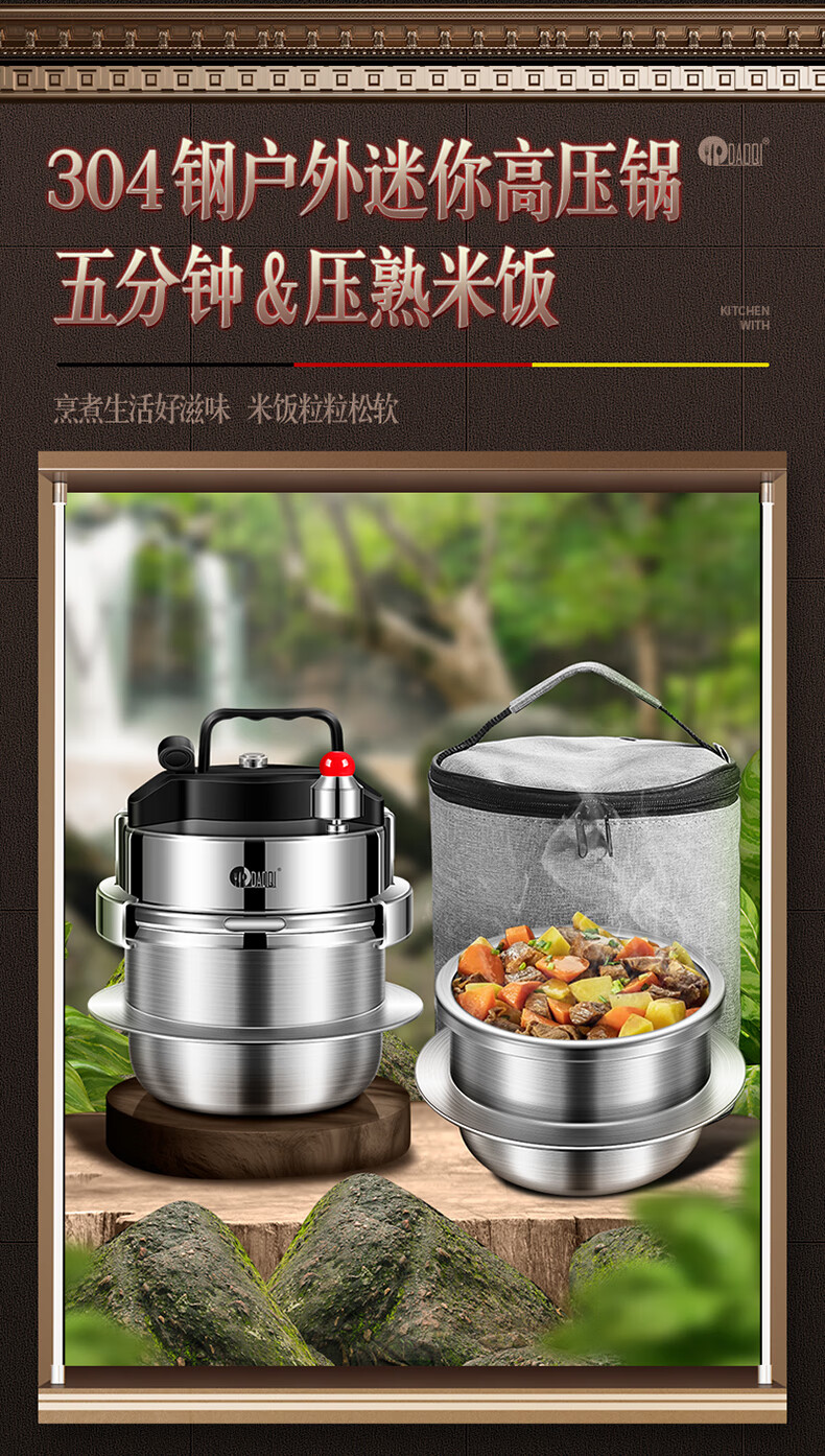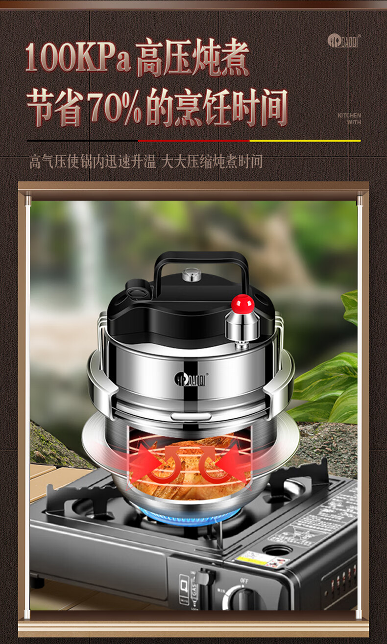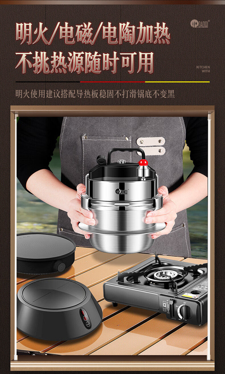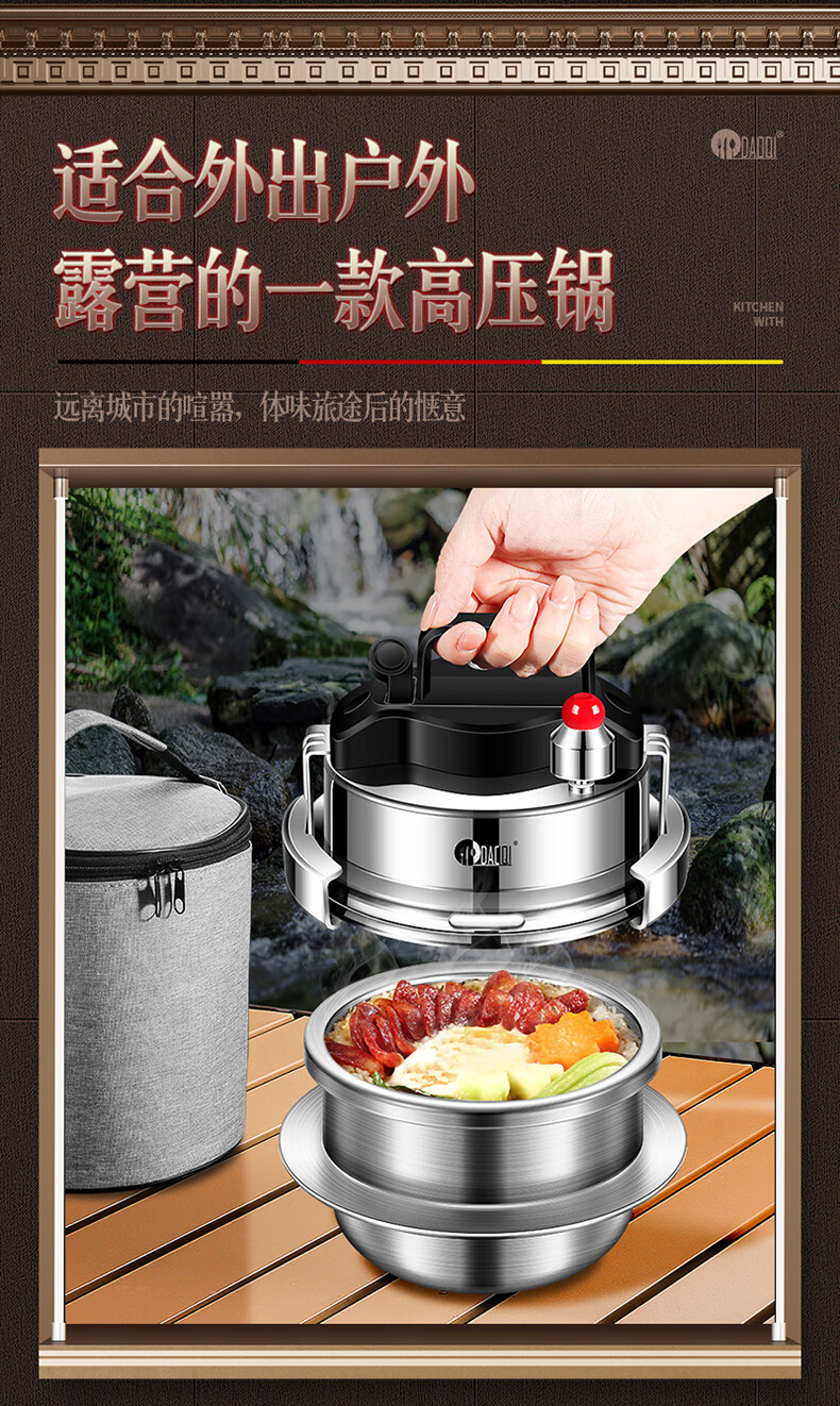 岛奇户外高压锅便携煮饭304不锈钢小型迷你压力锅露营自驾高海拔 户外不锈钢高压锅+袋子