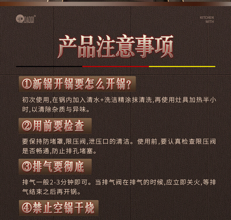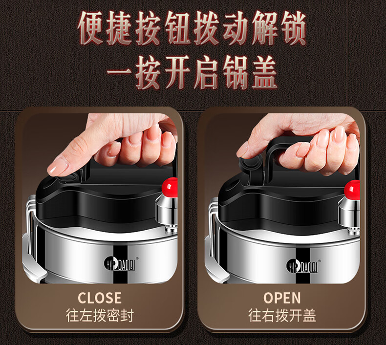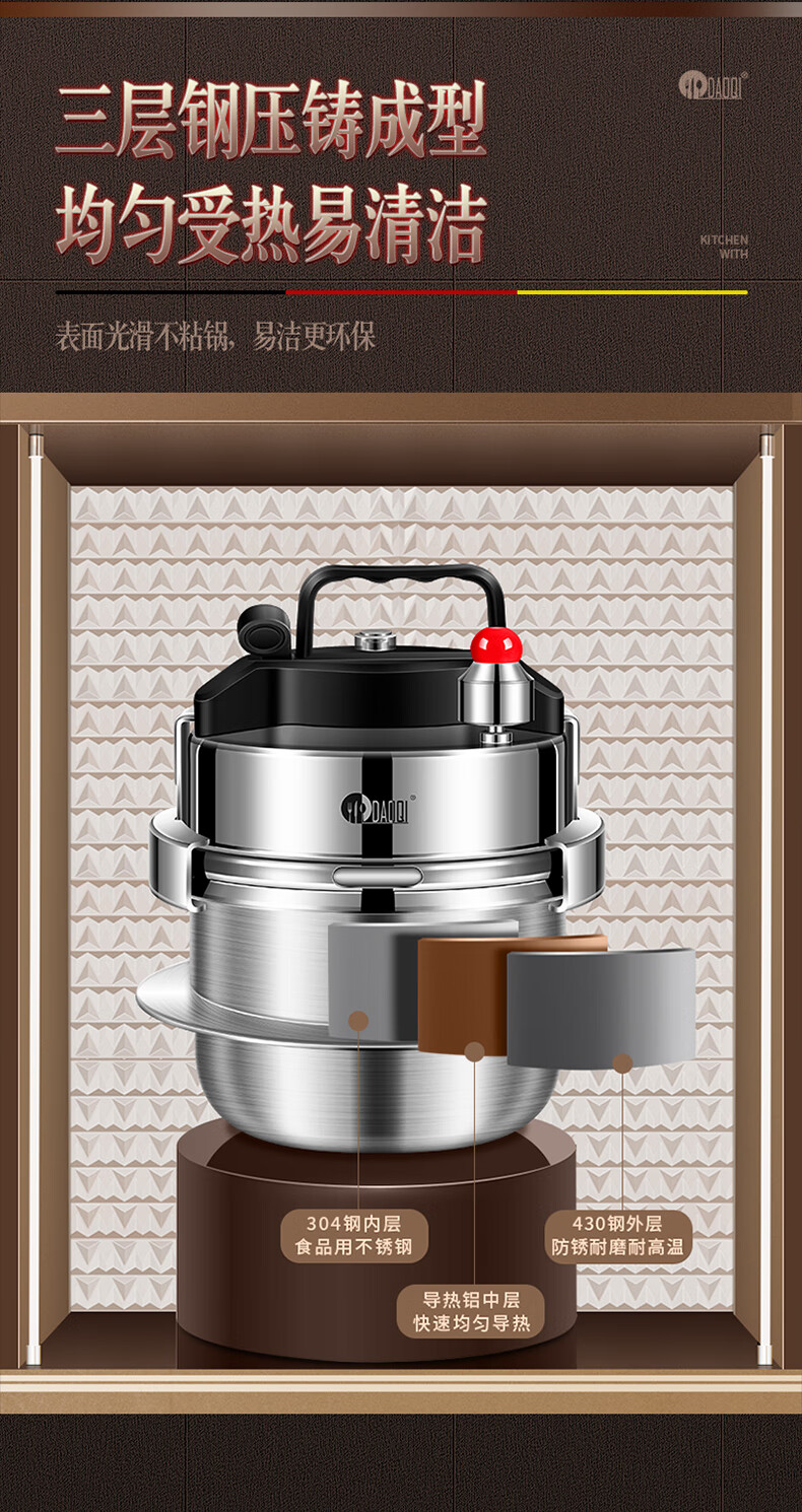 收到后很惊喜,是姐妹推荐的,说好用,我就跟着买了。使用上很方便,会比别的高压锅有质量。价格也很优惠。家里的锅都是daoqi这个牌子的。喜欢力推