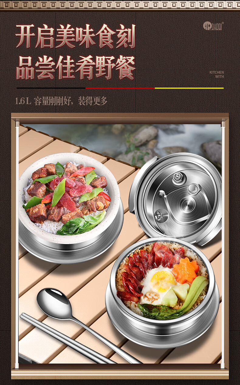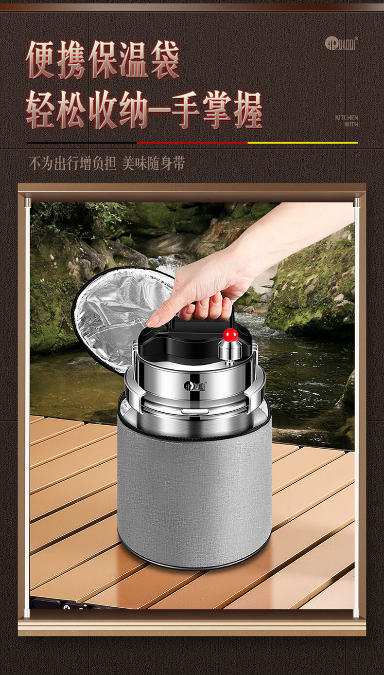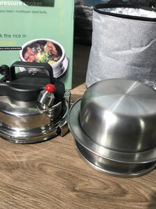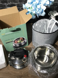 这款锅全不锈钢打造,锅壁锅底都很厚,更容易加热,旋钮开盖,卡扣严实,开启自如,看了一下说明书,操作简单,跟老款高压锅差不多,目前刚收到货,还没使用,手感很不错,带到户外也很方便,商家配有袋子,很周到了.