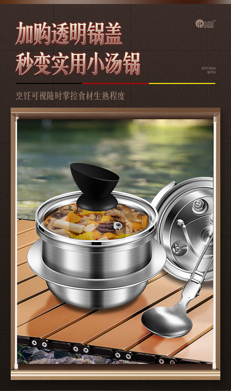 漂途户外露营多功能煮饭锅自驾游锅具大容量便携野炊蒸锅不锈钢吊锅 多功能锅