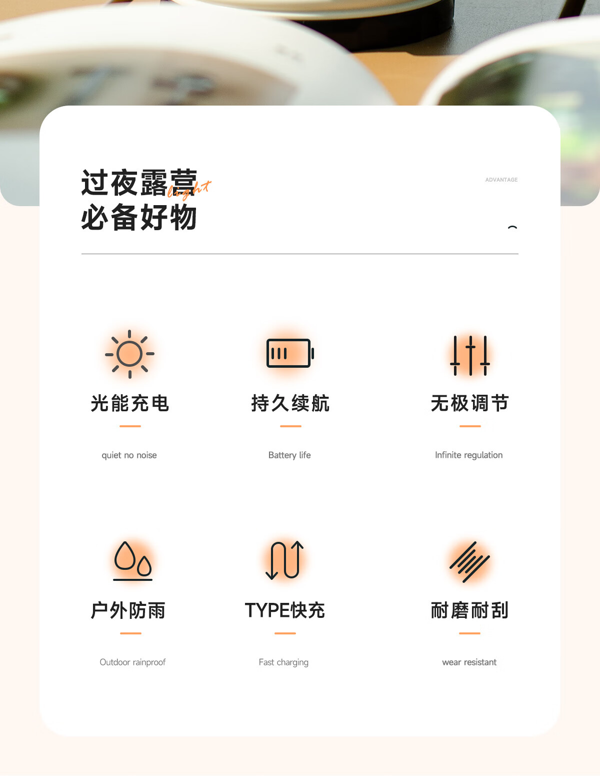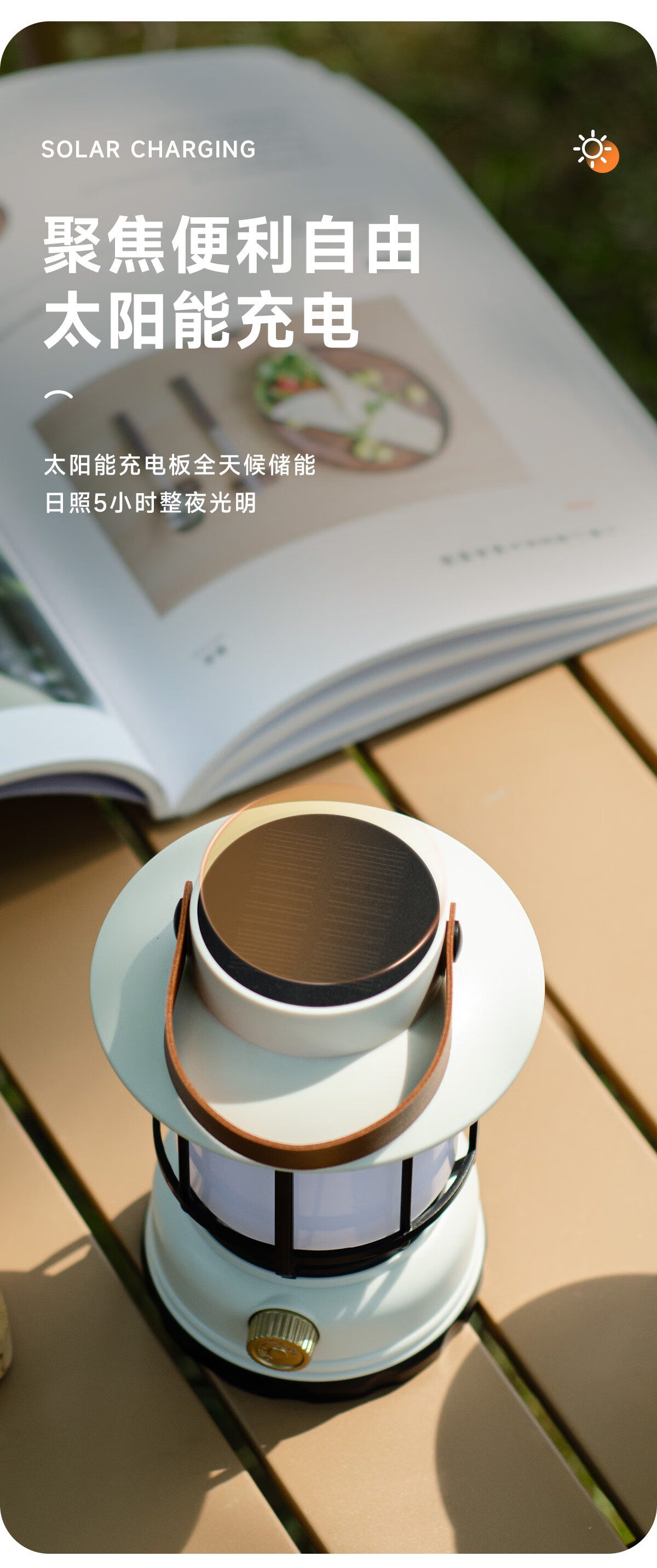 探险者(TAN XIAN ZHE)户外露营灯充电照明灯太阳能充电供电一体露营氛围灯摆摊照明灯 【暖光款】奶白色【太阳能充电】