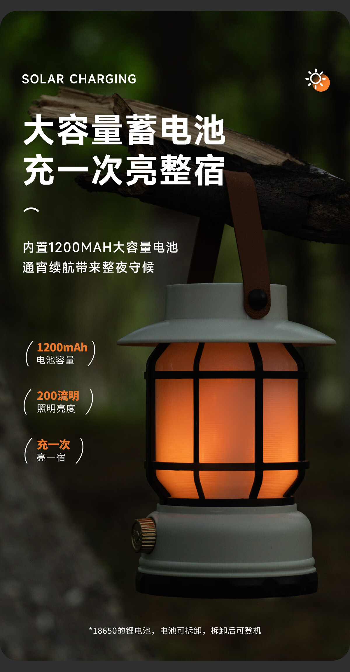 还有可以太阳能充电的露营灯,真的是让我很惊讶。露营灯很亮很好看,这个一开氛围感马上就上来了,放在客厅可以当个装饰品,外观精致好看,开灯后看着也合适,平时放哪儿都行,很喜欢。