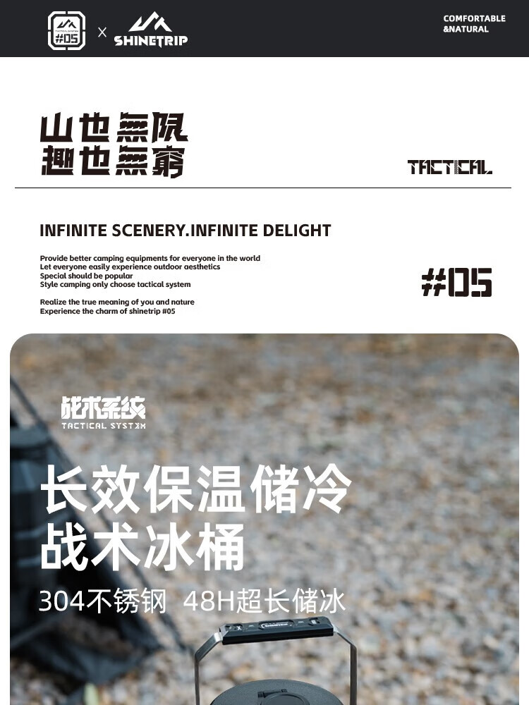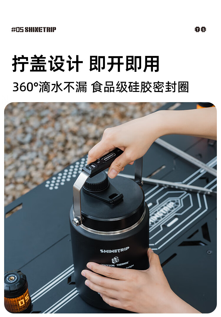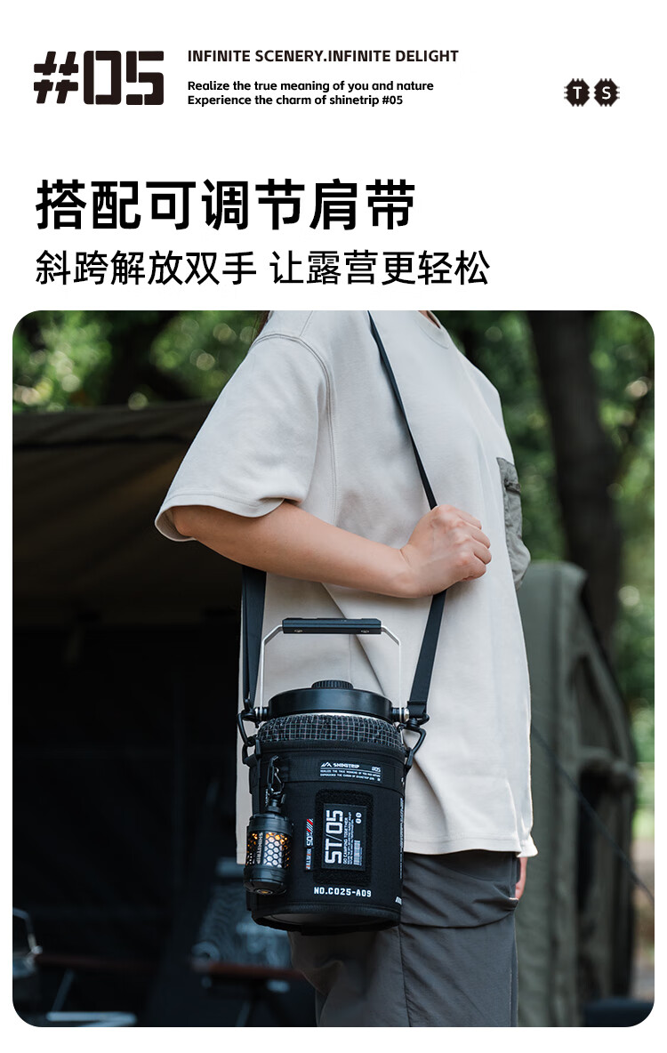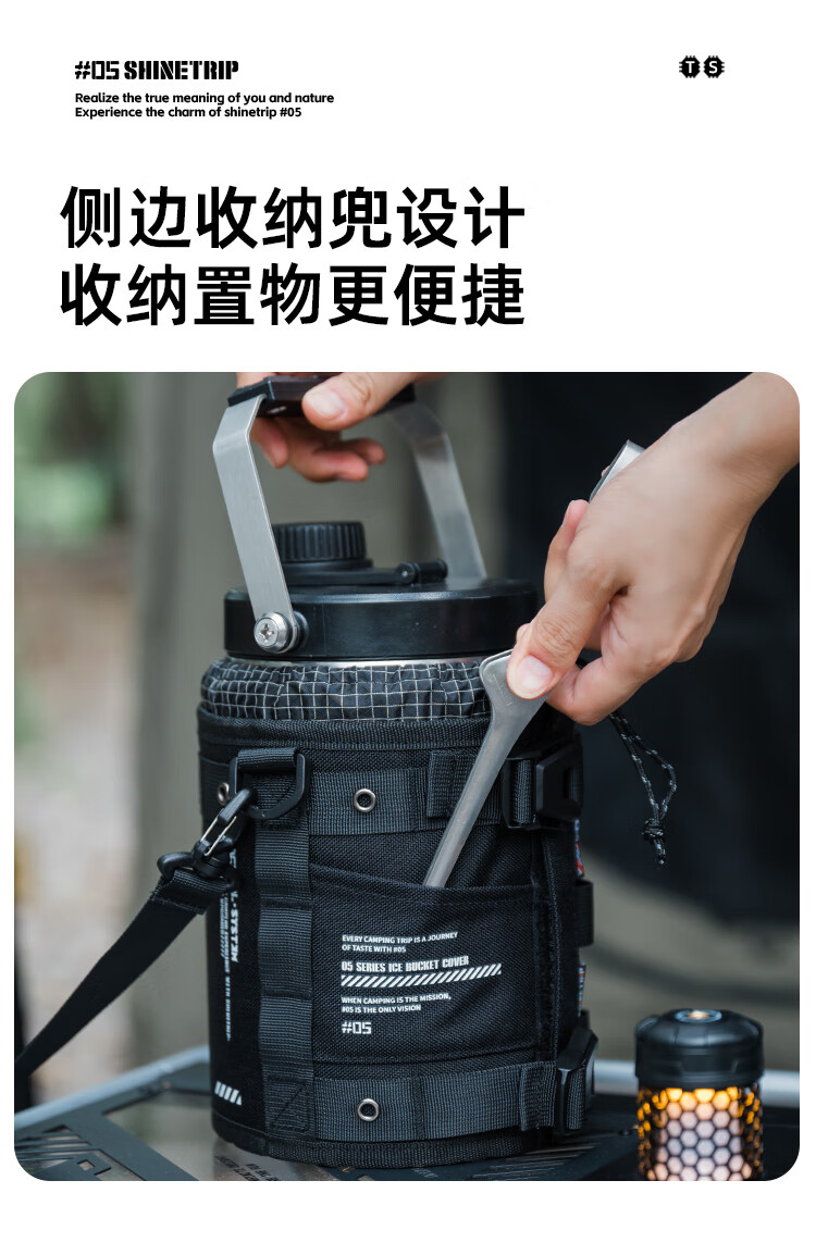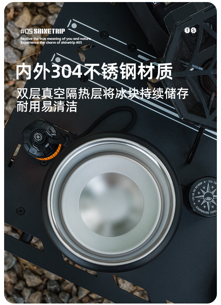 ShineTrip05战术冰桶户外露营保冷储存放冰块小保温桶家用保温箱手提便携式 逐暮黑【战术露营杯】