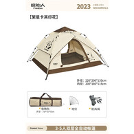 原始人黑胶帐篷户外折叠便携式野营露营全套装备过夜加厚防雨防晒 黑胶【双层自动帐篷】卡其色