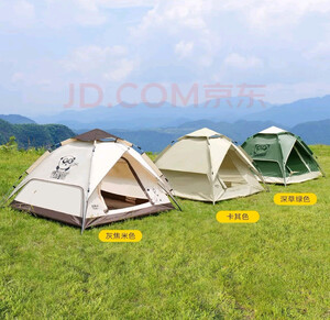 原始人黑胶帐篷户外折叠便携式野营露营全套装备过夜加厚防雨防晒 【双层自动帐篷】熊猫灰焦米色