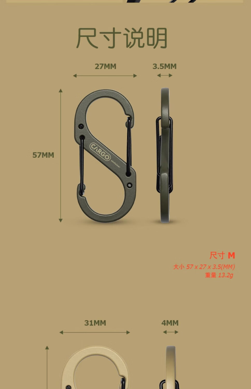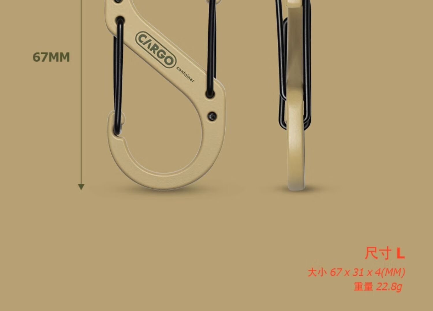 CARGO CONTAINER韩国CARGO CONTAINER户外露营专业登山扣8八字天幕挂钩背包钥匙扣 卡其色大号2个(包邮)