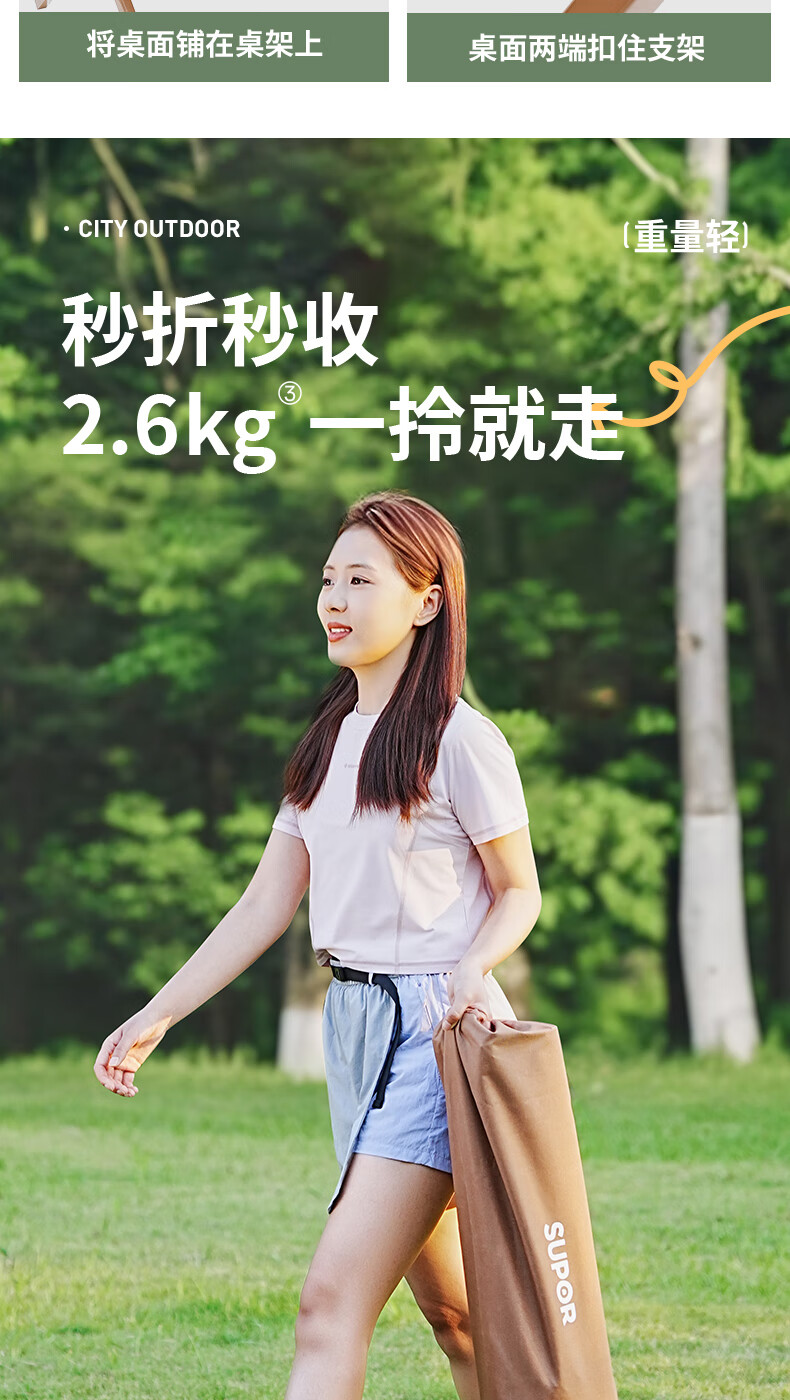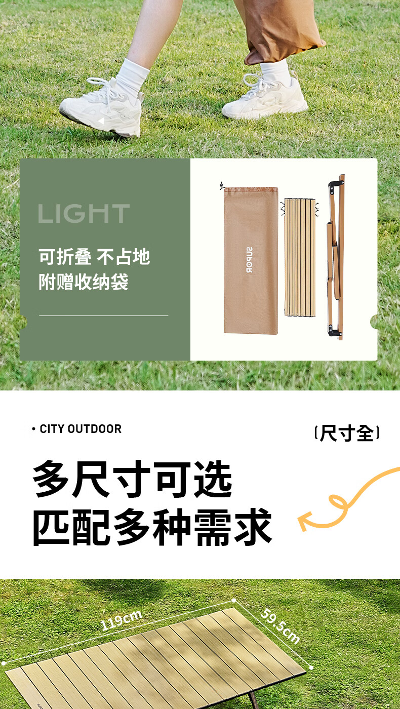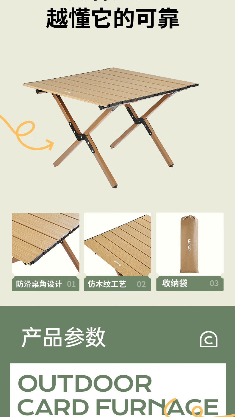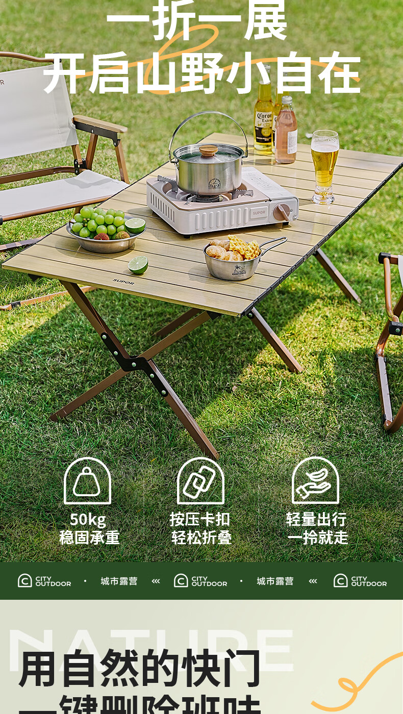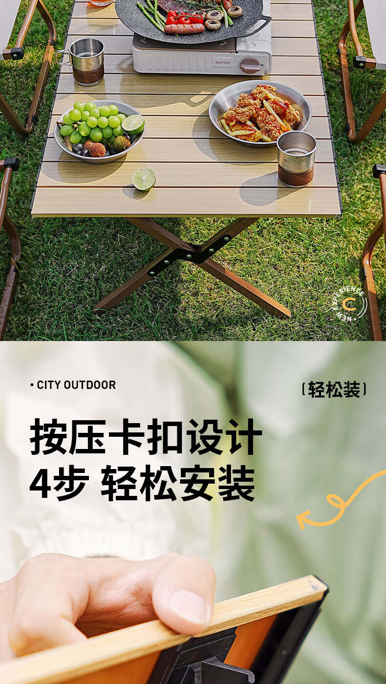 苏泊尔户外露营桌椅蛋卷桌便携式野炊桌子野餐摆摊烧烤旅行露营全套装备 【碳钢鹅黄】119cm长桌/推荐4-6人
