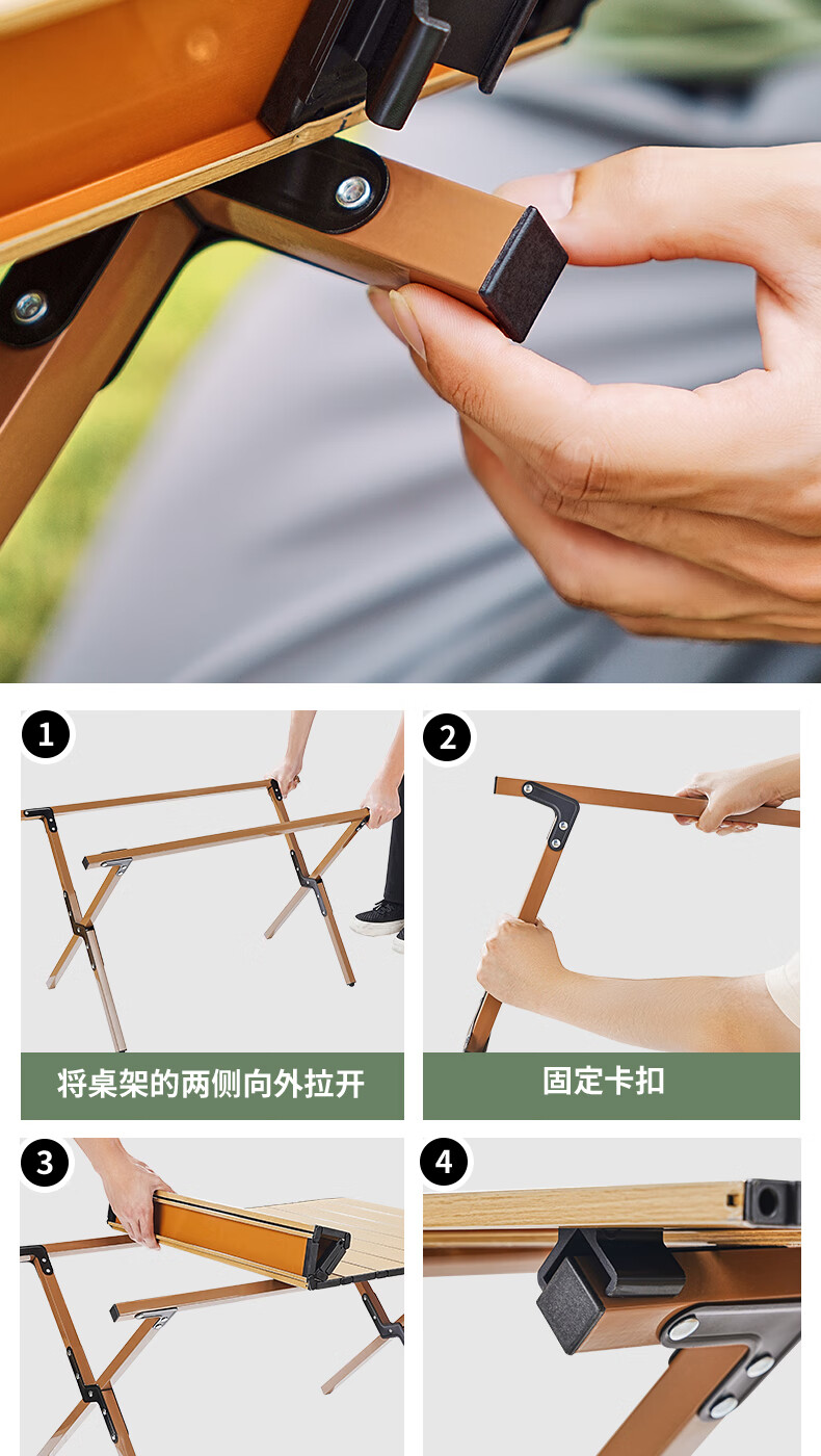 Guide Series户外铝合金折叠桌露营桌便携升降沙滩烧烤桌加宽桌自驾游车载桌 新 加宽金属 木纹黑色