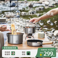 苏泊尔户外304不锈钢套锅锅具露营炉灶旅行便携式全套4件套卡式炉野餐锅 苏泊尔套锅