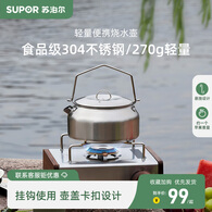 苏泊尔户外烧水壶304不锈钢饮茶具露营野炊开水壶围炉煮茶0.9L 0.9L不锈钢烧水壶