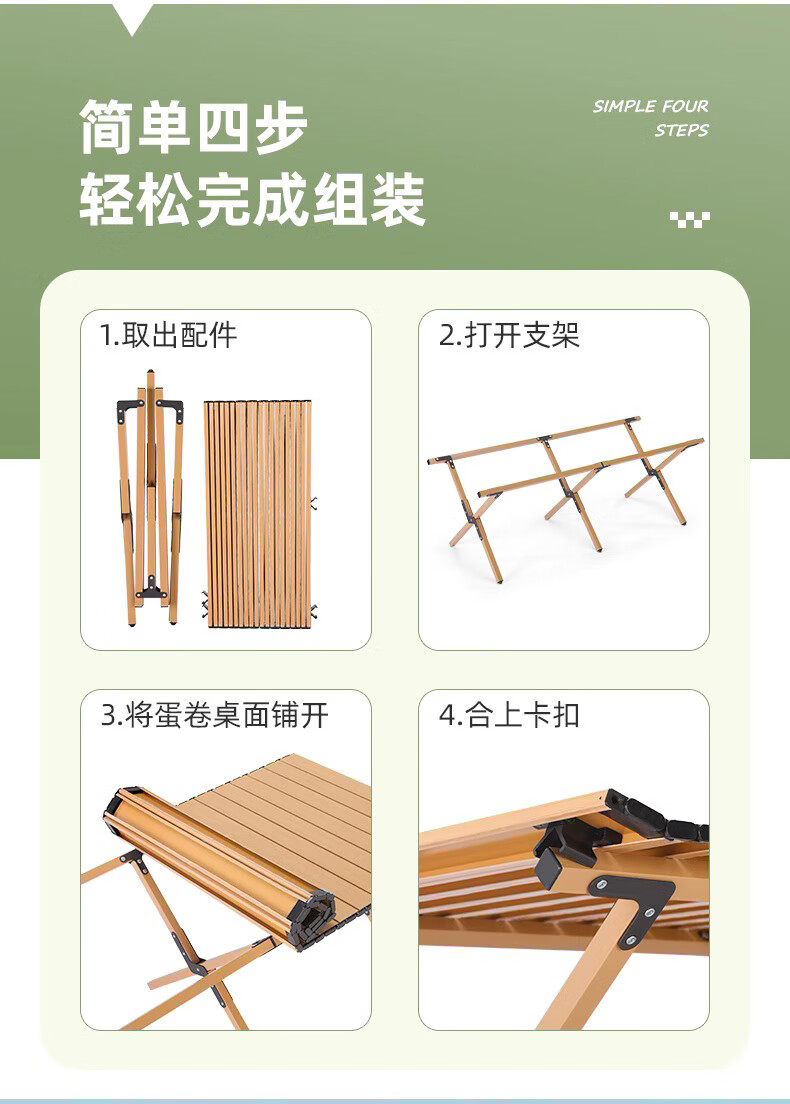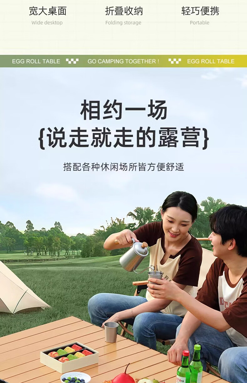 蛋卷桌收到了,五一出行也用上了,性价比高,组装简单方便,实用性强,尺寸大小合适,六七个人够用了,yyds,推荐入手!整体体验非常满意!