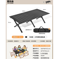 野徒者露营桌蛋卷桌户外折叠桌子椅便携式野餐桌椅露营装备野炊野营套装 耀夜黑【120-60】4/6人款 加固承重