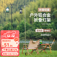 原始人户外露营灯架灯杆支架户外灯架杆露营灯野营马灯置物架挂架 铝合金插地折叠灯架(墨绿色)