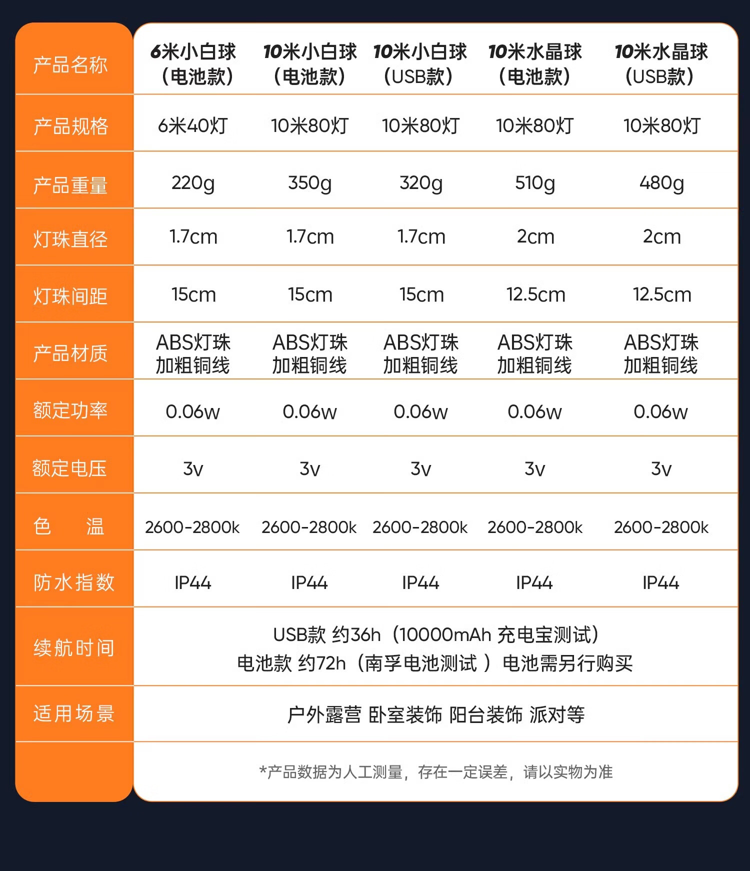 原始人(The Primitive) 户外露营灯野营照明氛围天幕帐篷灯串led超长续航装饰用品串灯带 10米80灯-升级水晶球(USB款)