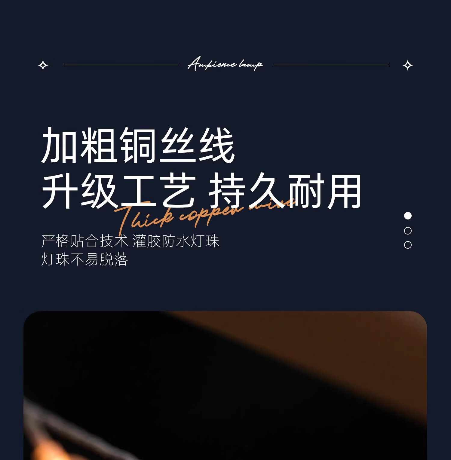 光照强度:很给力,安装后很漂亮 续航时间:不太费电 产品材质:质量很不错 其他特色:很漂亮没氛围灯的话确实感觉就像缺少了那一丝点缀! 东西很不错,回家也可以使用,用来装饰阳台。价格也很合理,唯一的遗憾就是收拾起来不太方便。