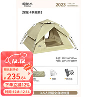 原始人黑胶帐篷户外折叠便携式野营露营全套装备过夜加厚防雨防晒 银胶【双层自动帐篷】卡其色