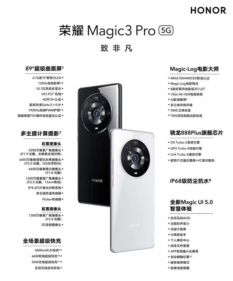 荣耀(HONOR)Magic3 【未拆封未激活】骁龙888 6.76英寸 66W快充 4600mAh大电池 5G全网通手机 魔术3 Magic3-釉白色 8GB+256GB