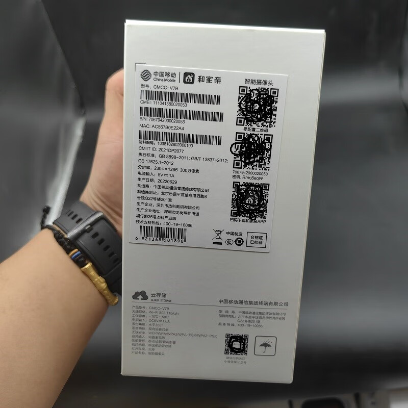 原焋原装V7B摄像头双向语音360度旋转300万像素远程监控室内高清 中国移动V7B300万像素 无