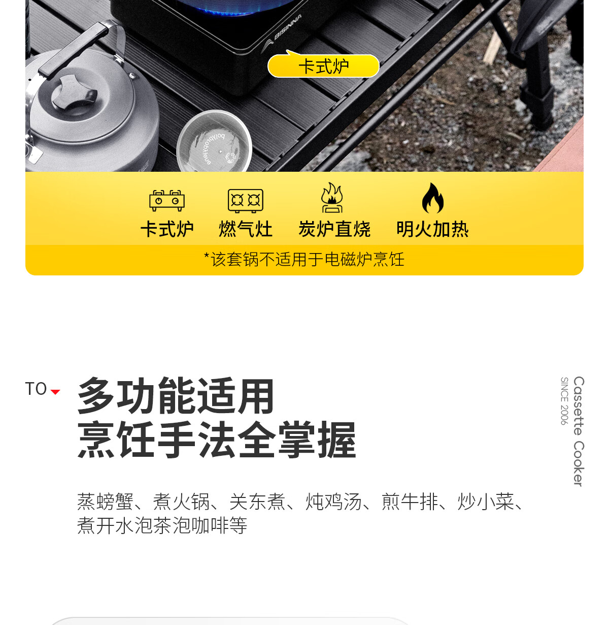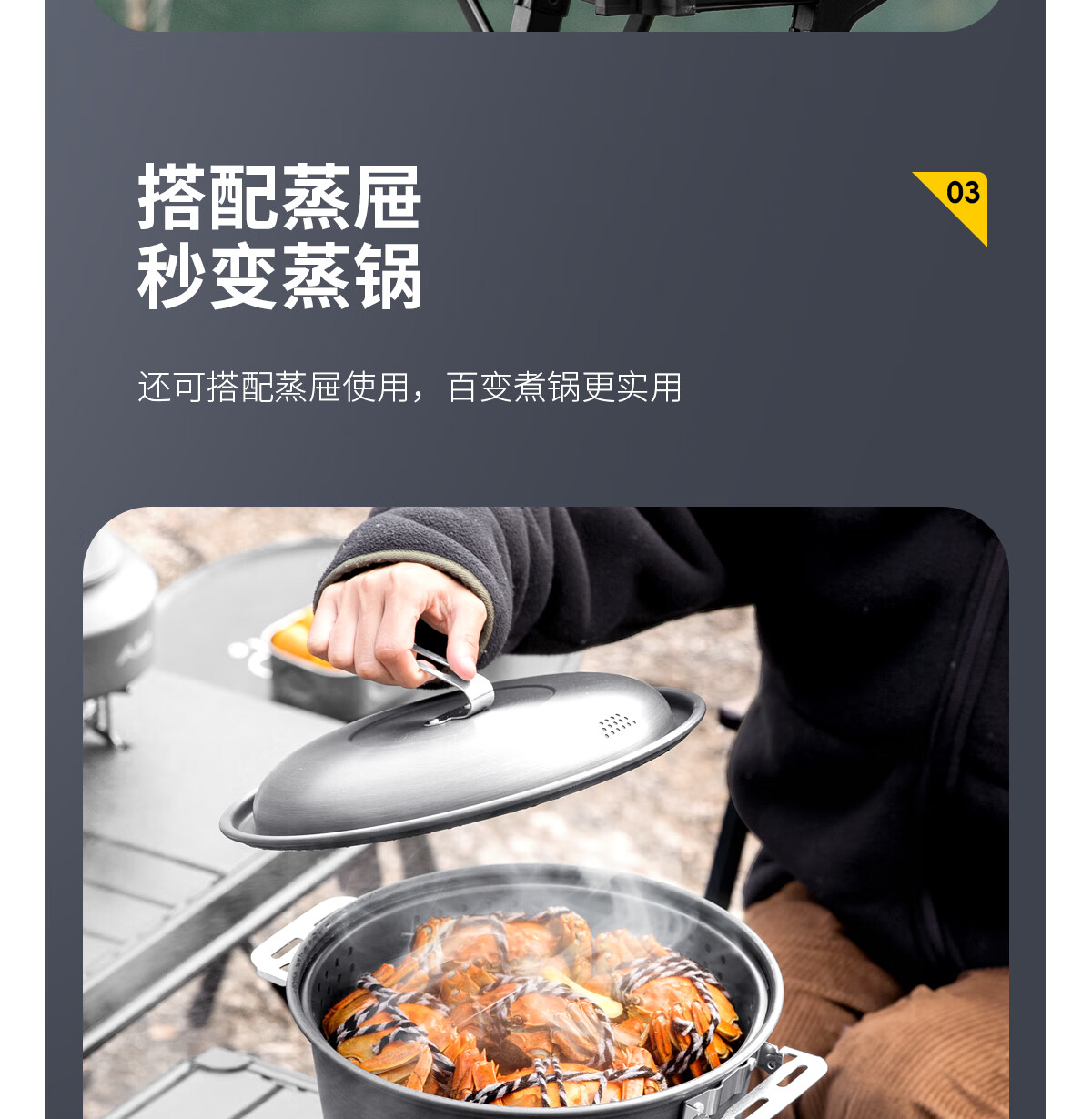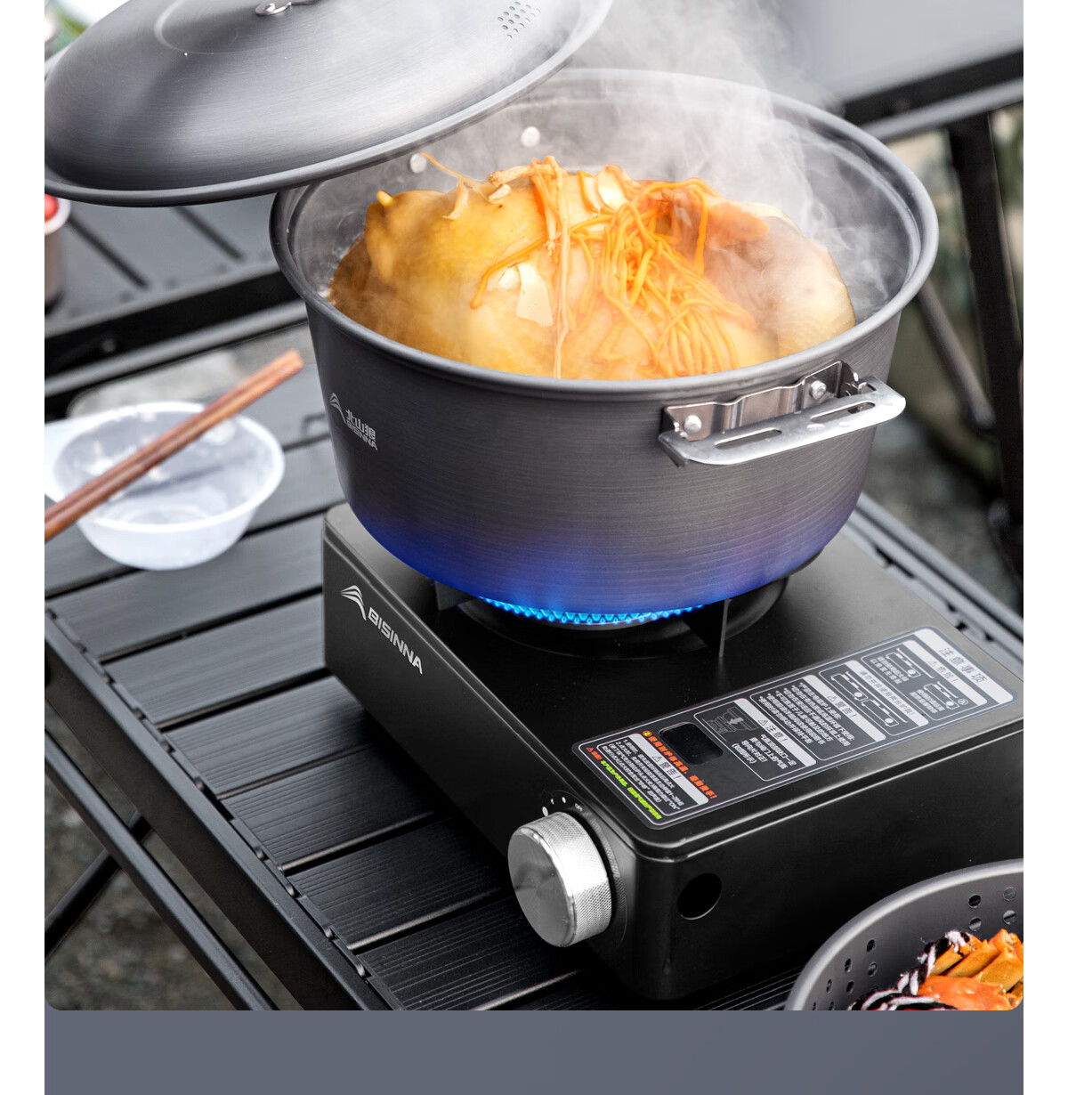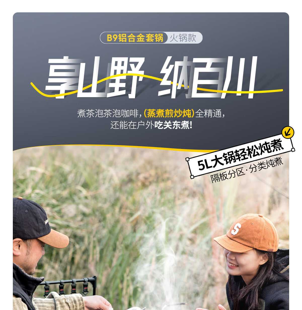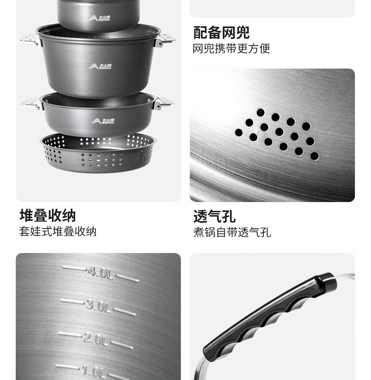 北山狼户外露营卡式炉锅具套装烧水壶煎锅煮锅组合野营全套装备 煮锅+蒸屉【配收纳袋】