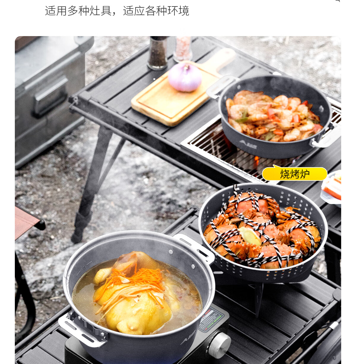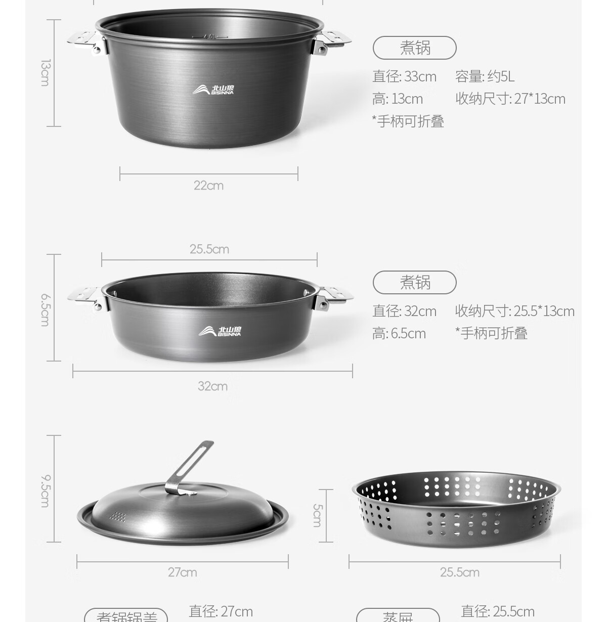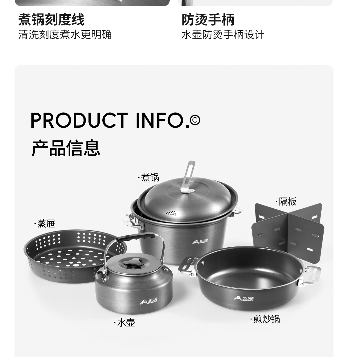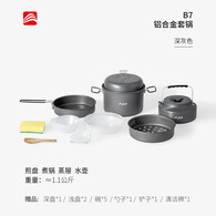 北山狼铝合金户外锅具套装 露营套锅 烧水壶煎盘汤锅旅行装备全套 B7全套套锅