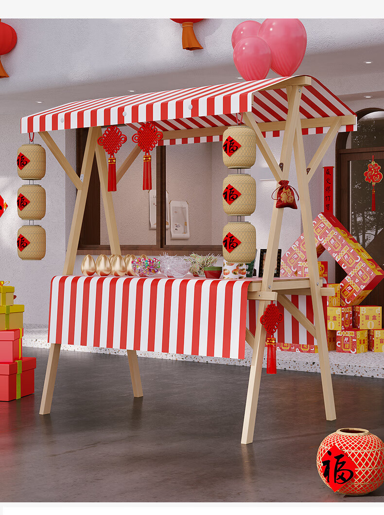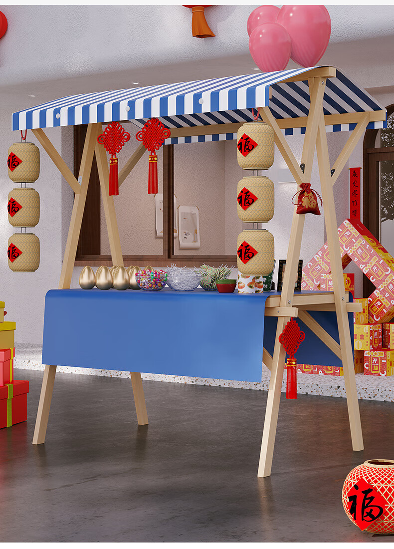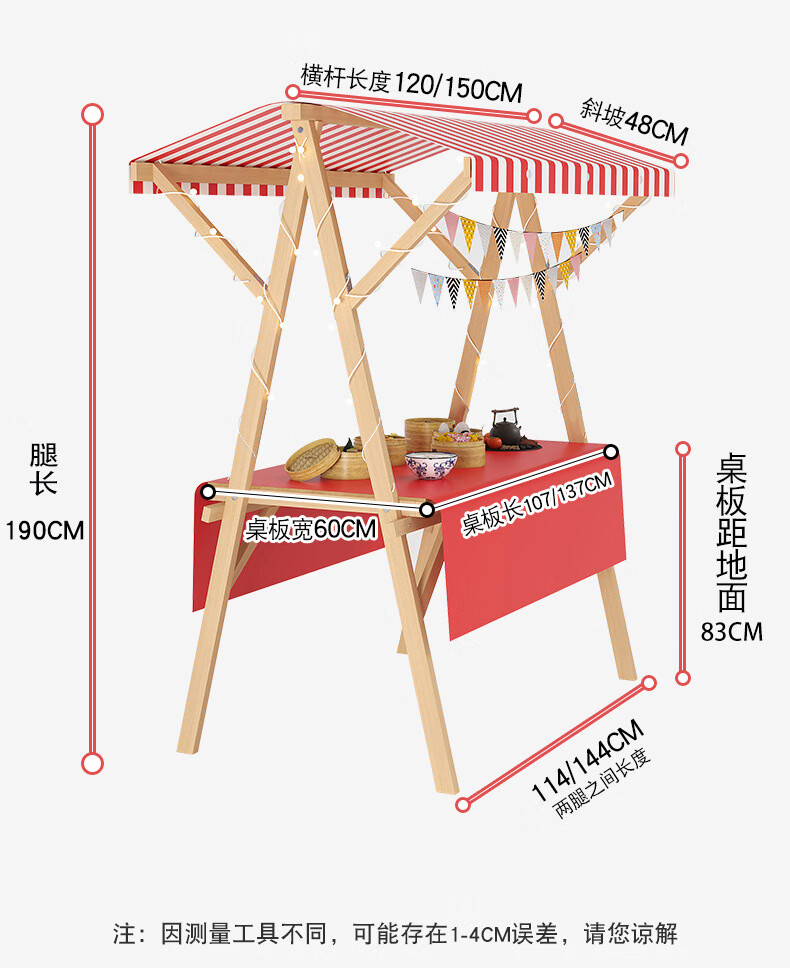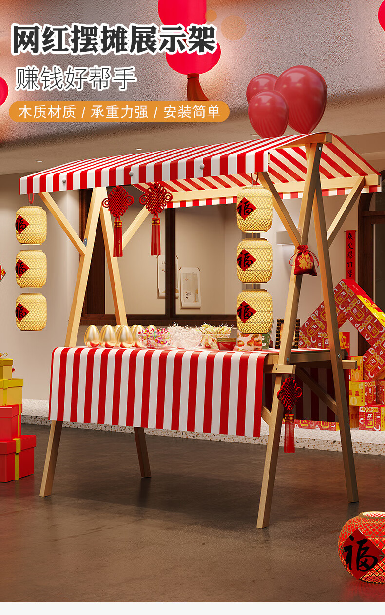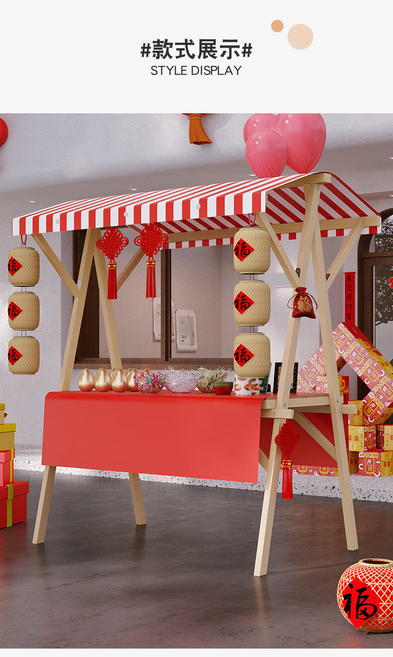 古慕妮户外折叠展示架集市摊位木帐篷售卖车摆摊夜市花车市集创意小吃车 a款总长1.5*0.6*2米白松