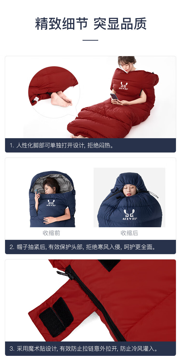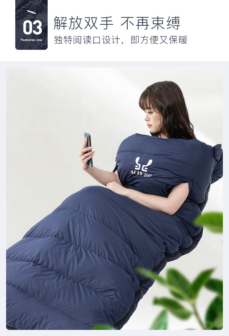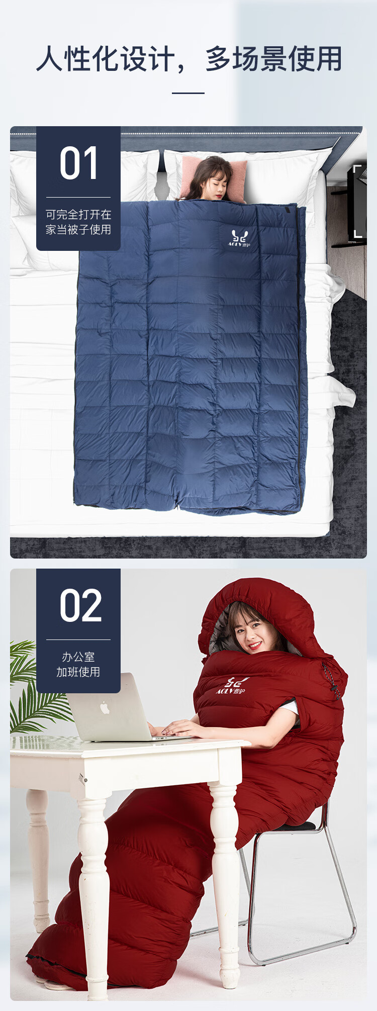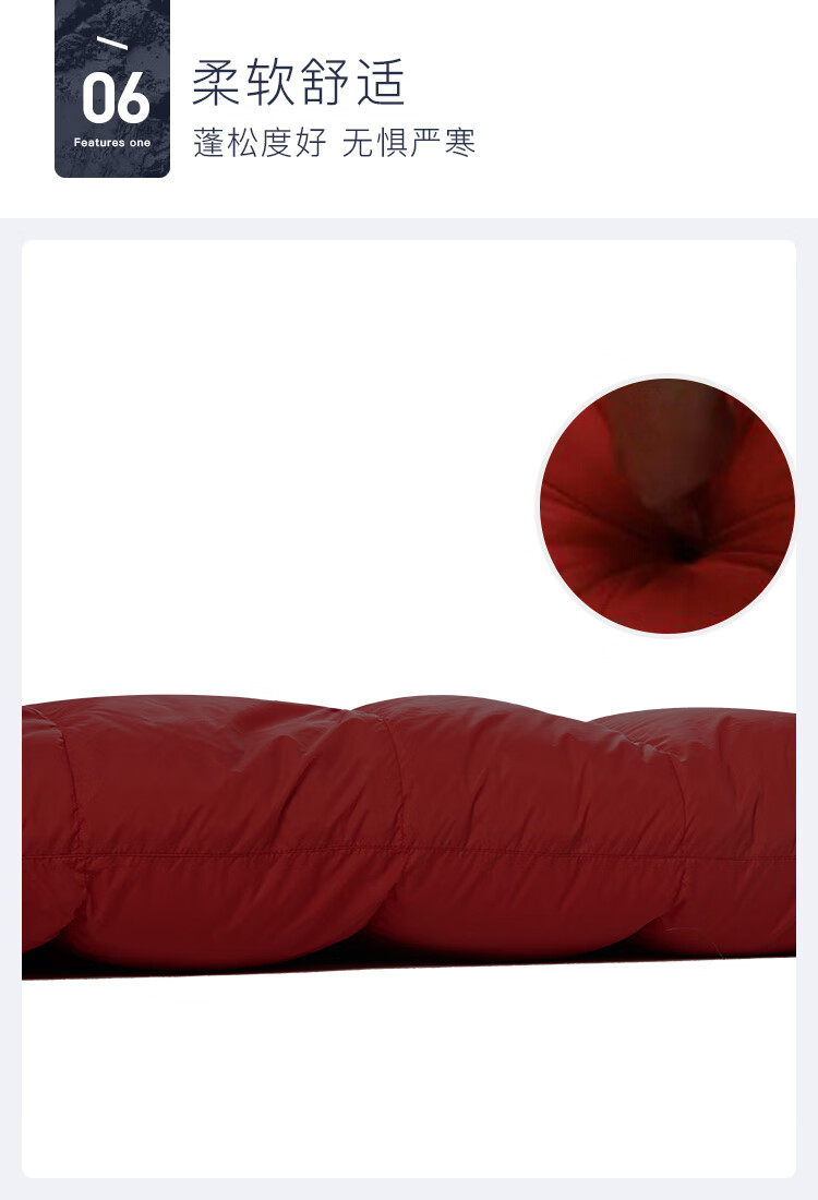 买回来还没用过,总体感觉应该还不错吧!挺轻的,方便携带。面料柔软,鹅绒的保暖效果应该不会差。个人觉得这种信封式的舒适度要比木乃伊式的好一些,具体要等有时间了体验一下再来分享!