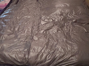我买的三个是1800克填充羽绒的,第一天在家里“演习”一次,感觉比棉被暖和,儿子迫不及待地睡了一宿,感觉保暖度没的说,只是外面面料比较滑容易跑(不过露营不耽误),里面面料也是绸的,直接贴皮肤不舒服,如果在里面像冲锋衣那样挂一层棉绒内胆,脏了可以拆下来水洗就更好了(这个也不耽误露营,露营不能脱那么光溜儿),睡袋感觉很好。