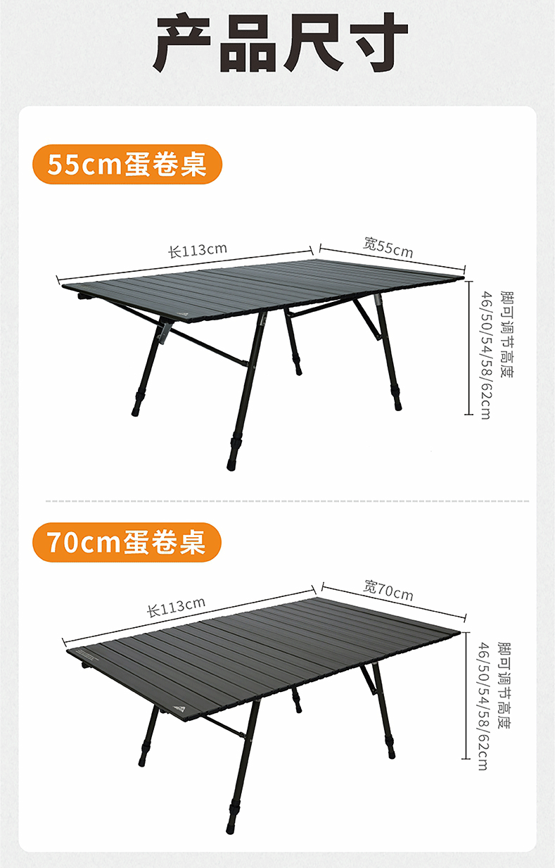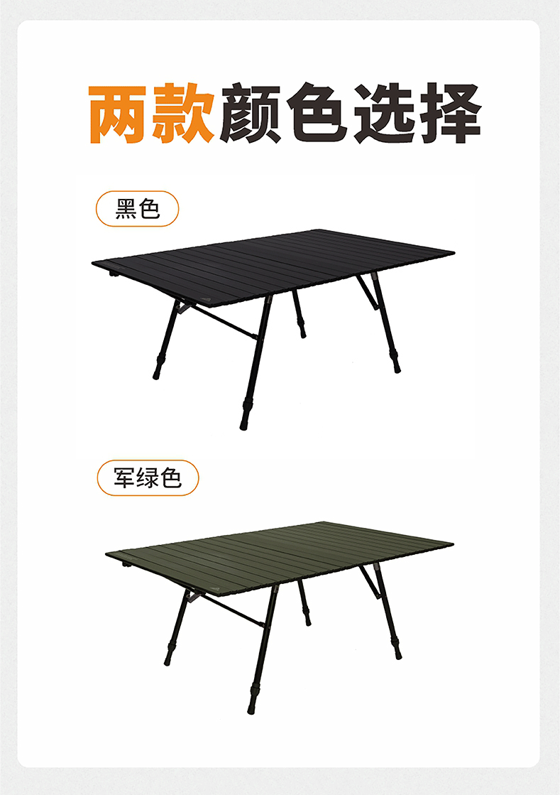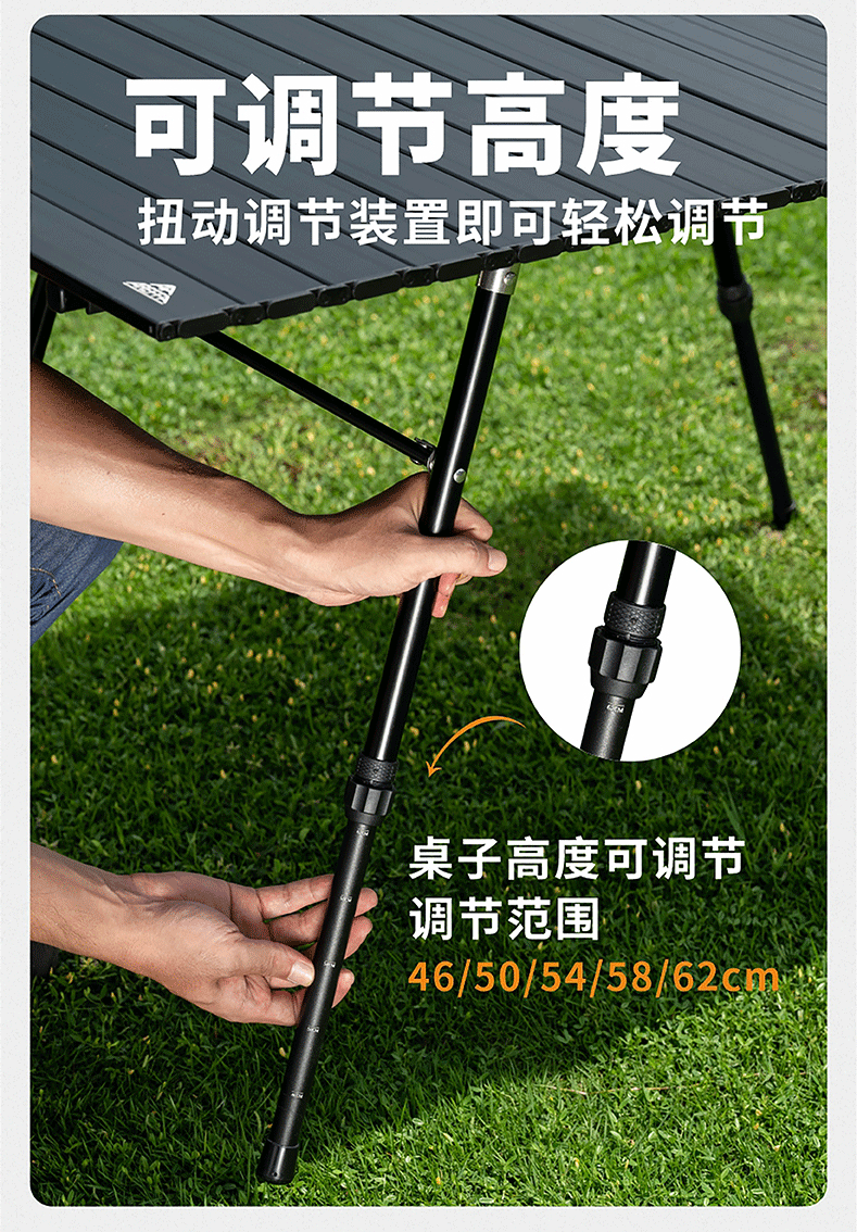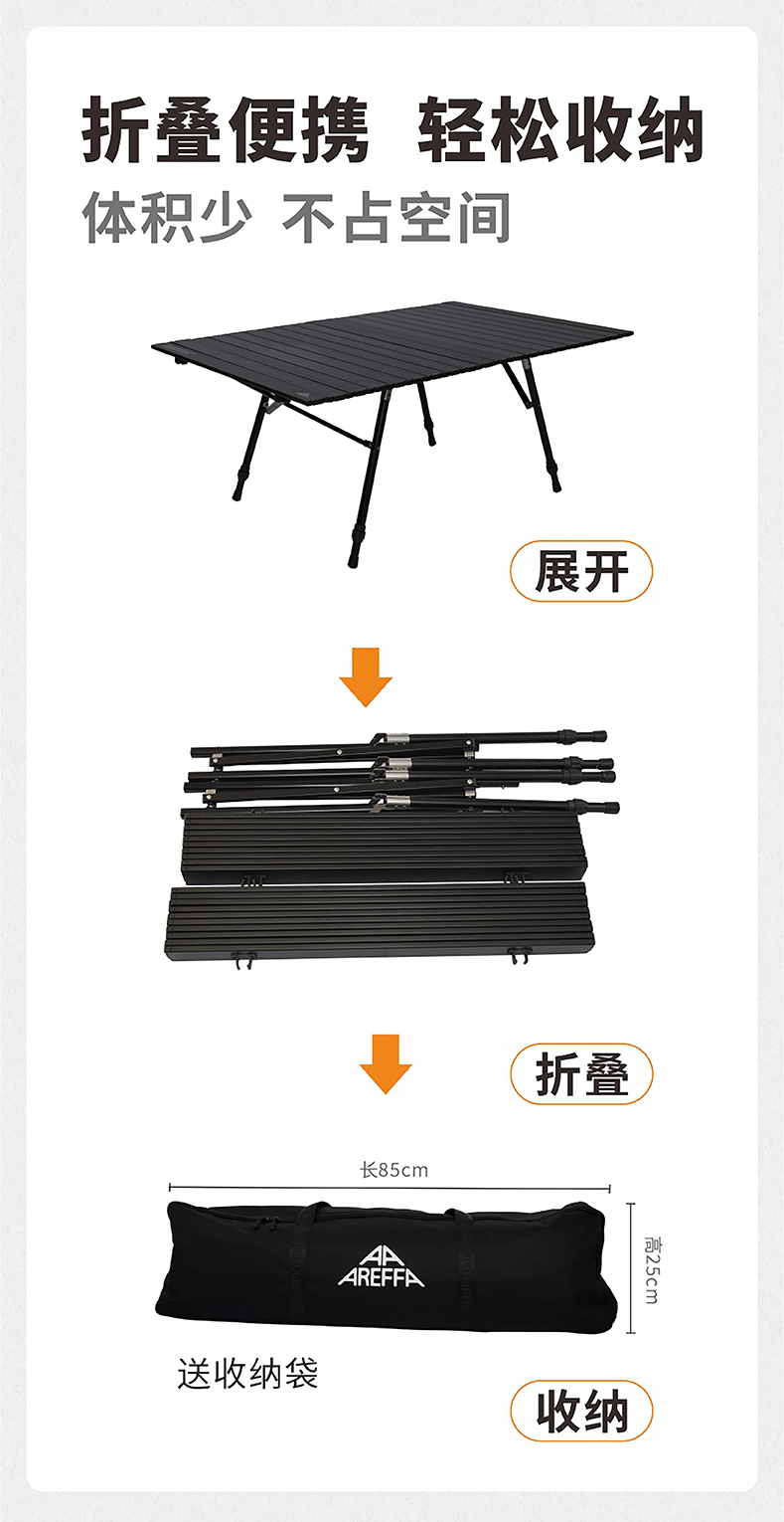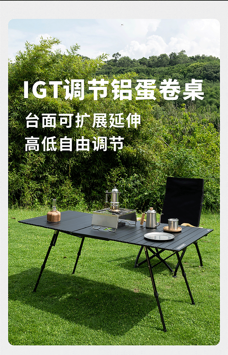AREFFAAreffa户外露营可调节高度折叠桌可升降桌子便携野餐桌超轻蛋卷桌 70CM黑色 IGT高低调节蛋卷桌