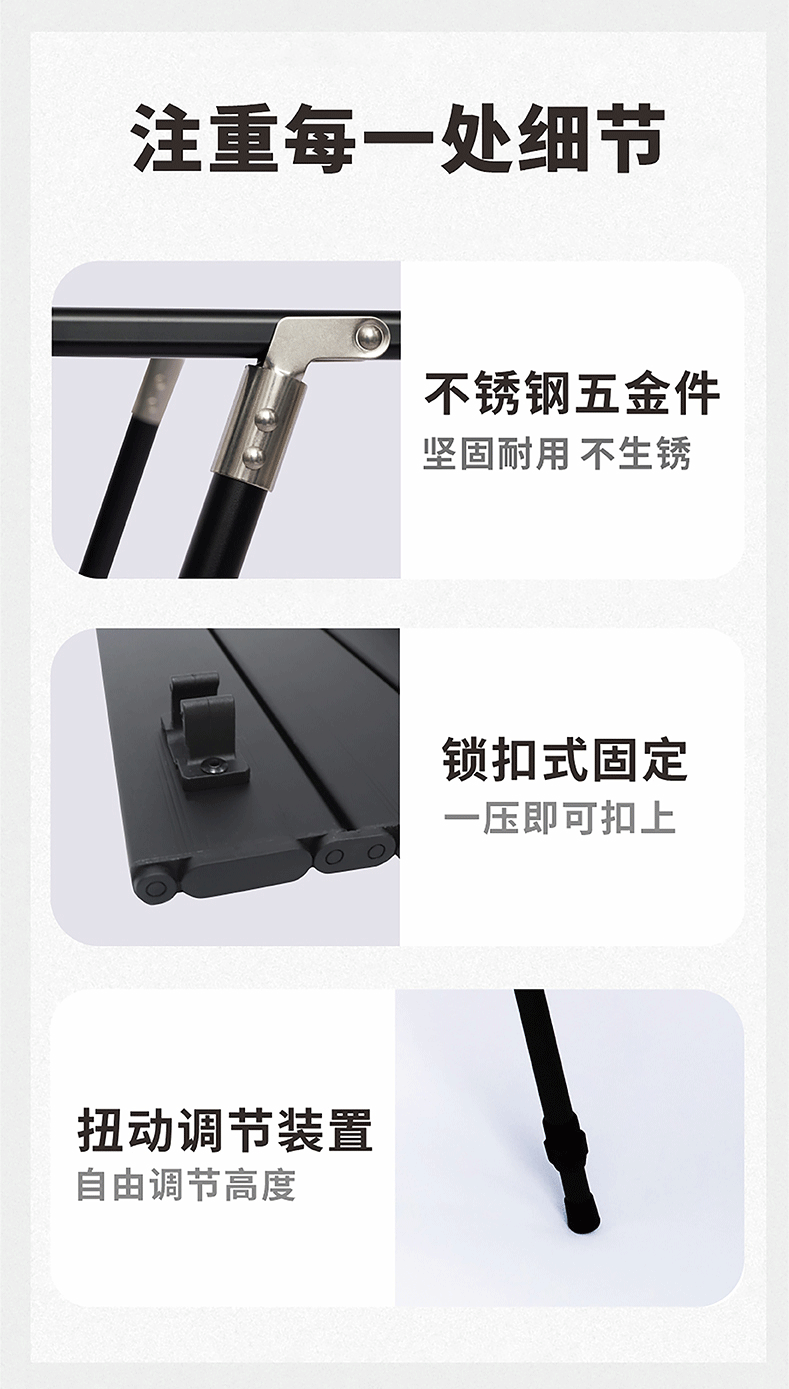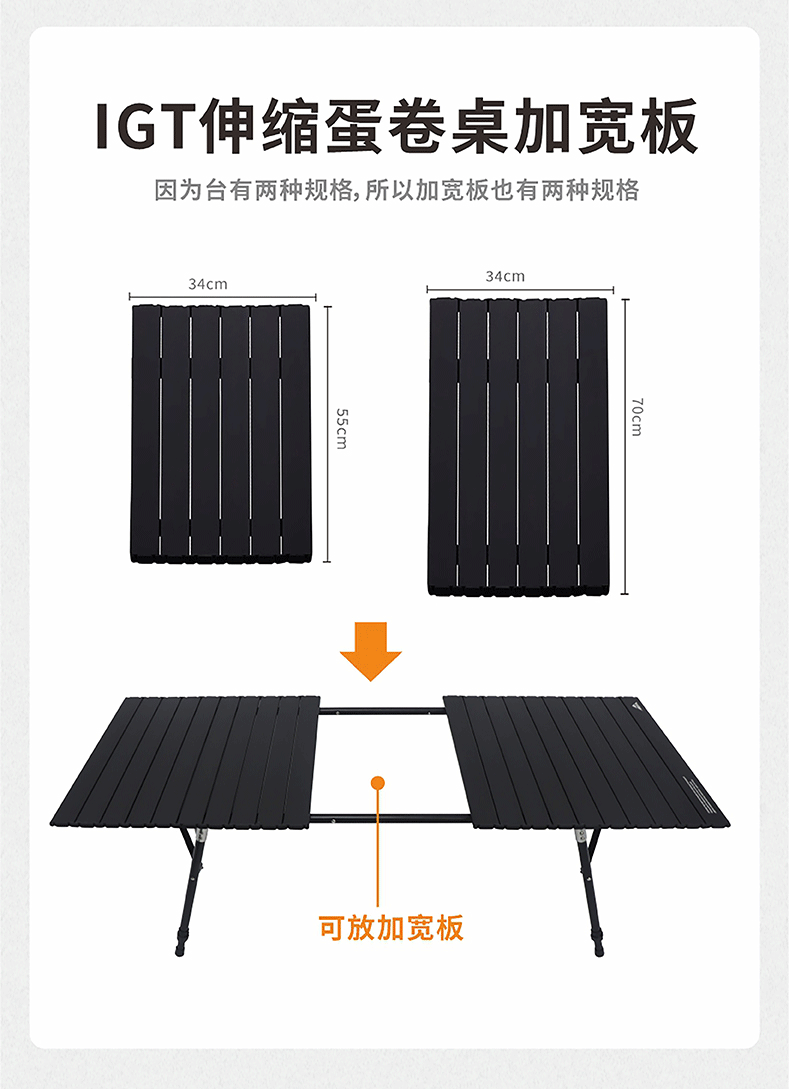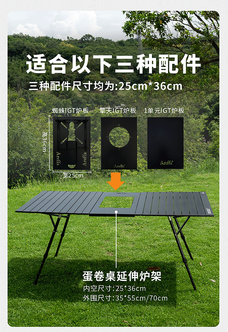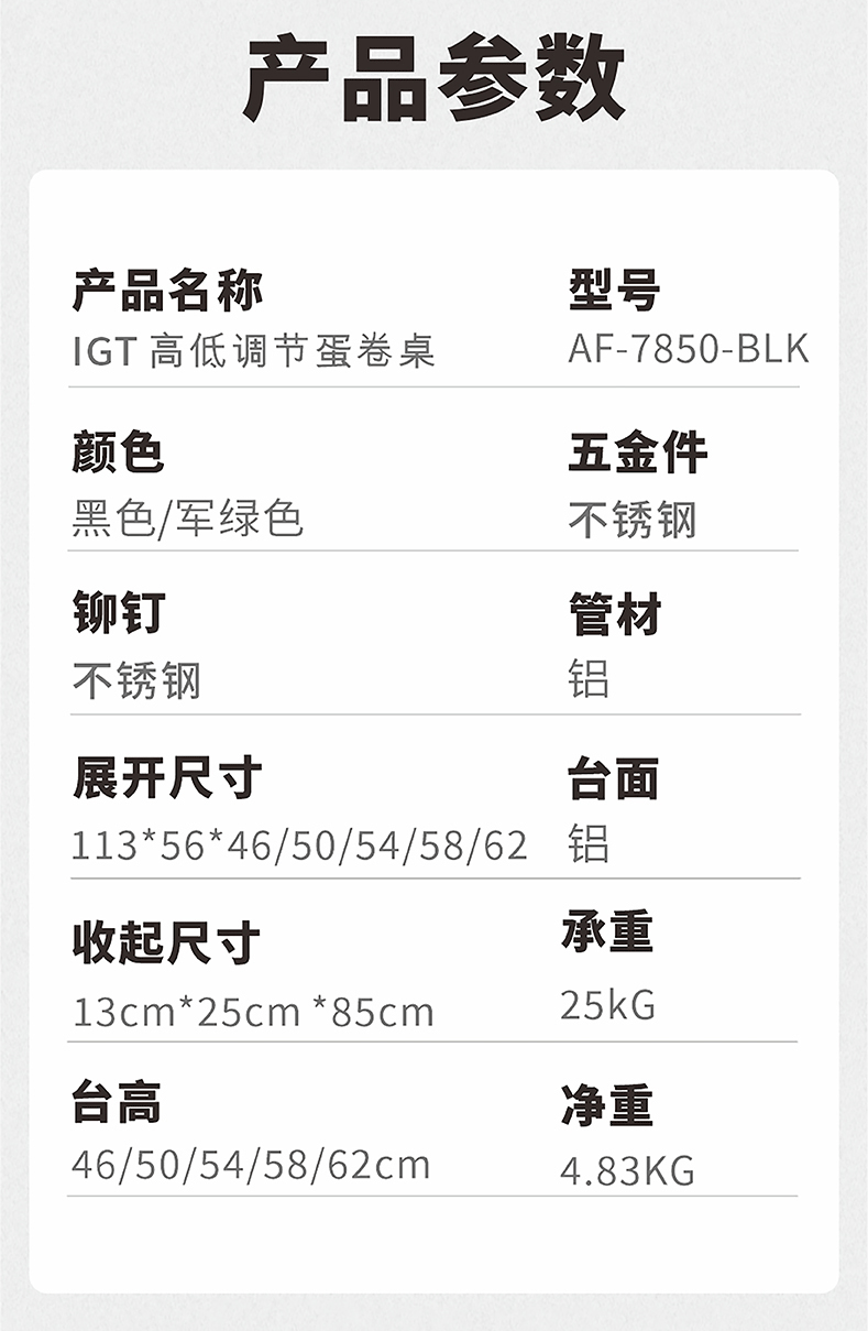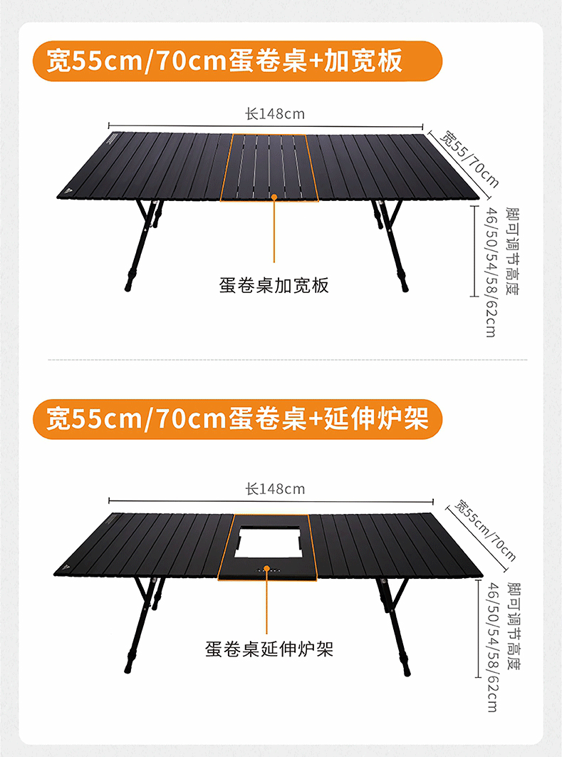 AREFFAAreffa户外露营可调节高度折叠桌可升降桌子便携野餐桌超轻蛋卷桌 70CM黑色 IGT高低调节蛋卷桌