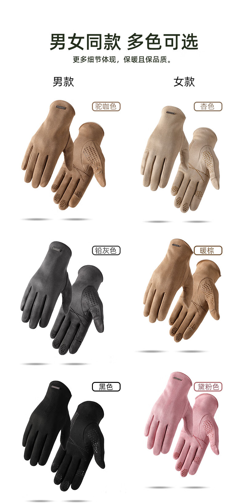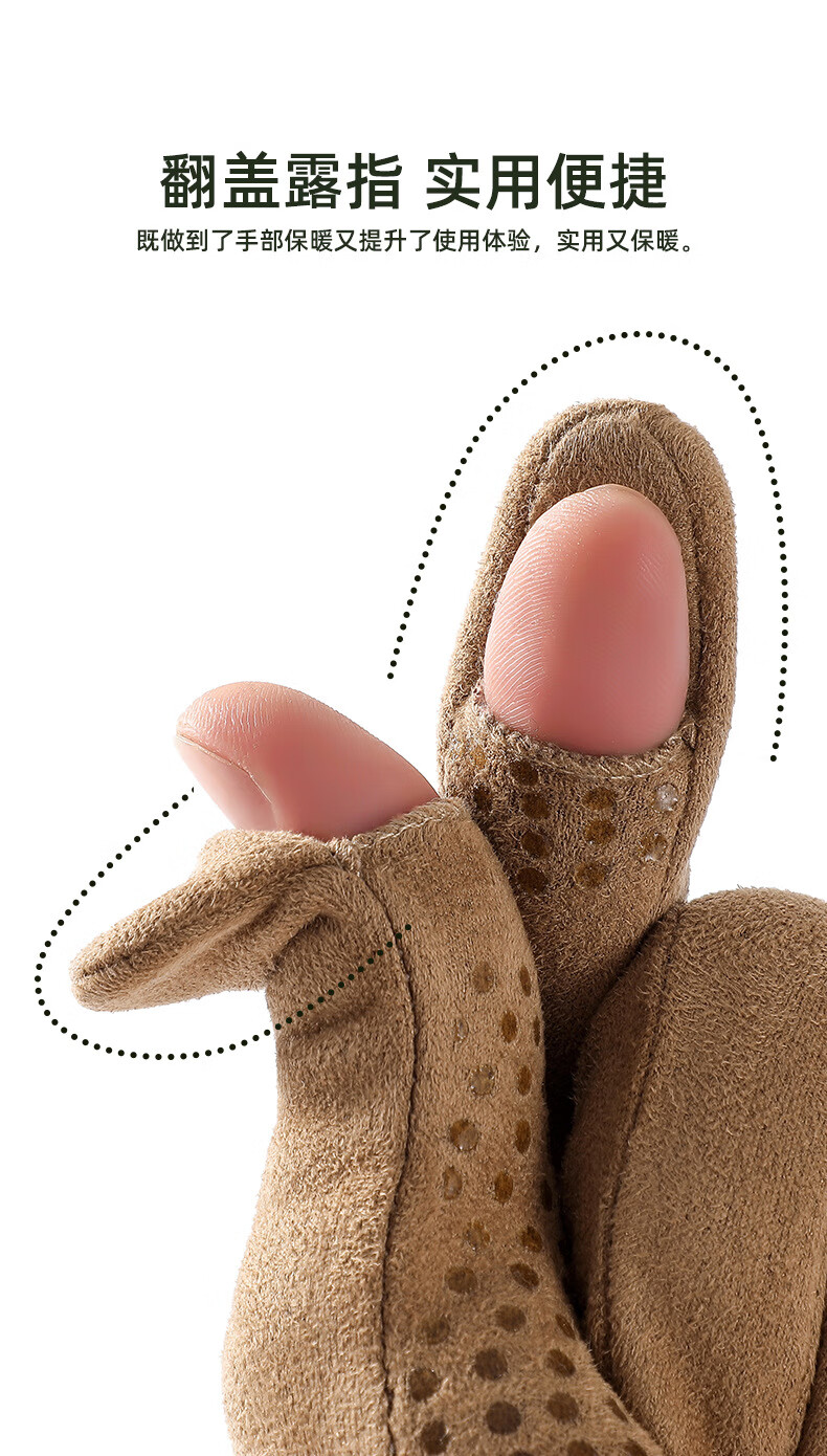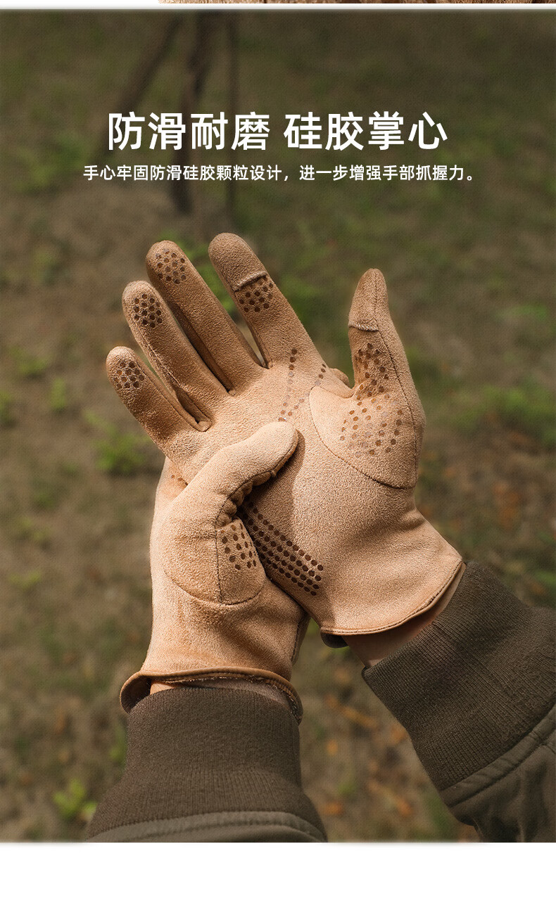 槿城麂皮绒手套冬季保暖男女户外骑行麂皮绒加绒加厚防滑翻盖触屏手套 驼咖色-男 均码