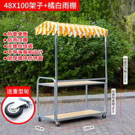 卫辞夜市烤肠面筋冰粉摆摊小推车可折叠桌子移动便携网红地摊小吃车 48X100cm四寸大轮仅架子橘白雨棚