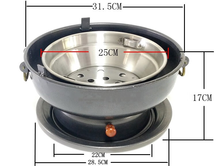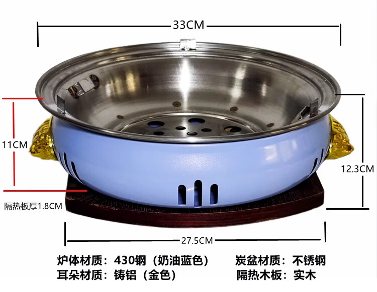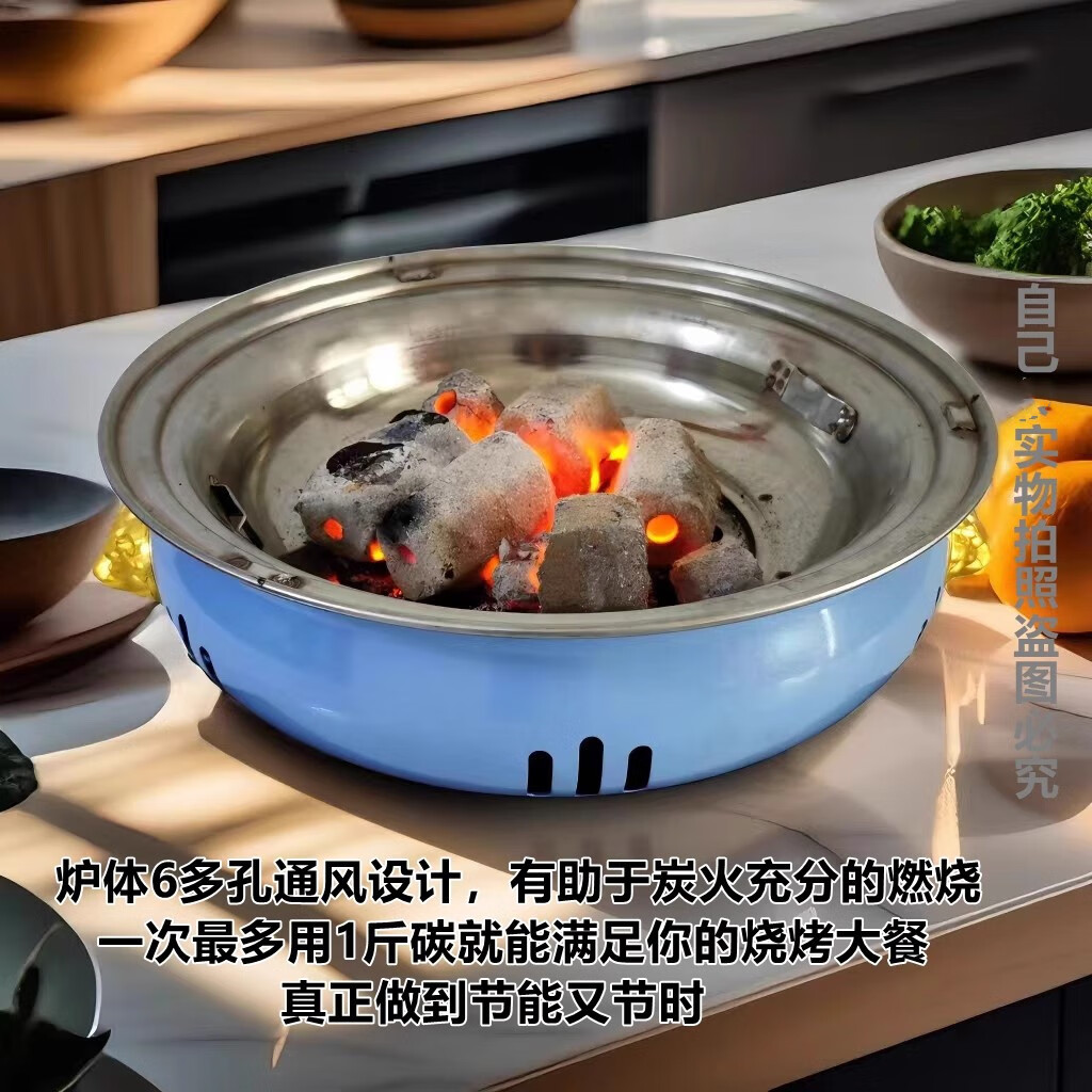 宝禾木炭碳烤炉家用火盆圆形围炉煮茶室内烧烤炭火桌炉烧烤炉架烤肉炉 标配+盖板+不锈钢密网