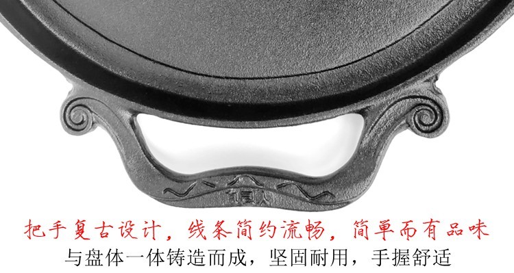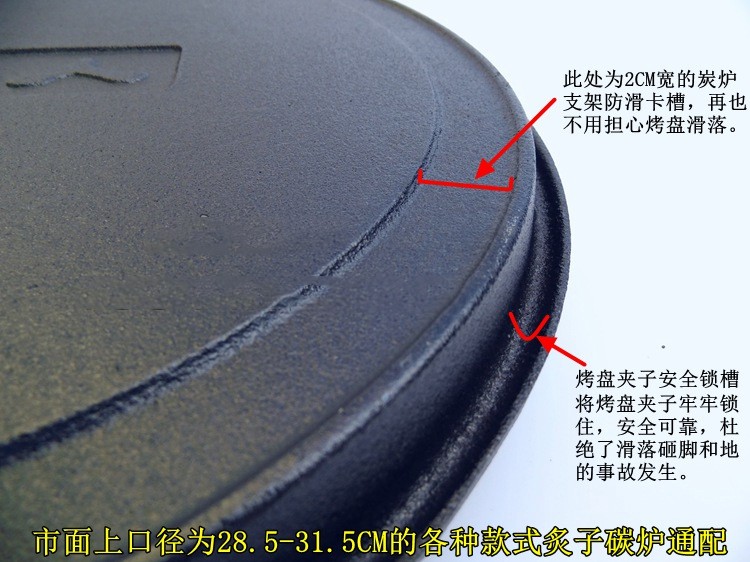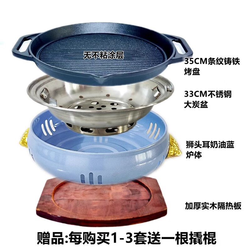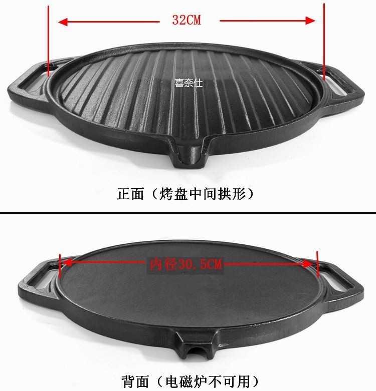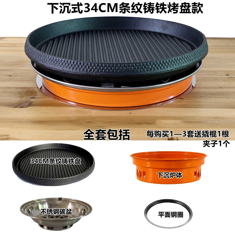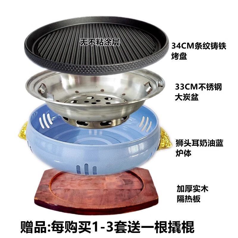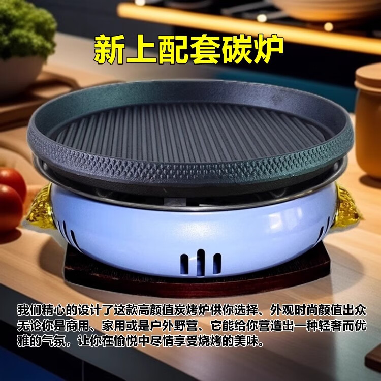 喜奈仕传统复古烤盘老北京炙子烤肉炉韩式烧烤炉无涂层漏油烤炉 34CM复古加深款+碳炉 盘深3CM