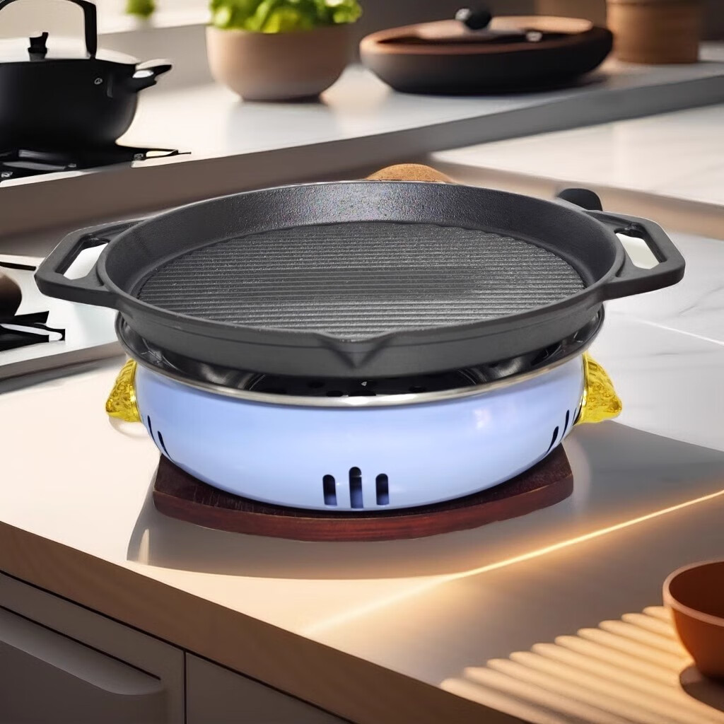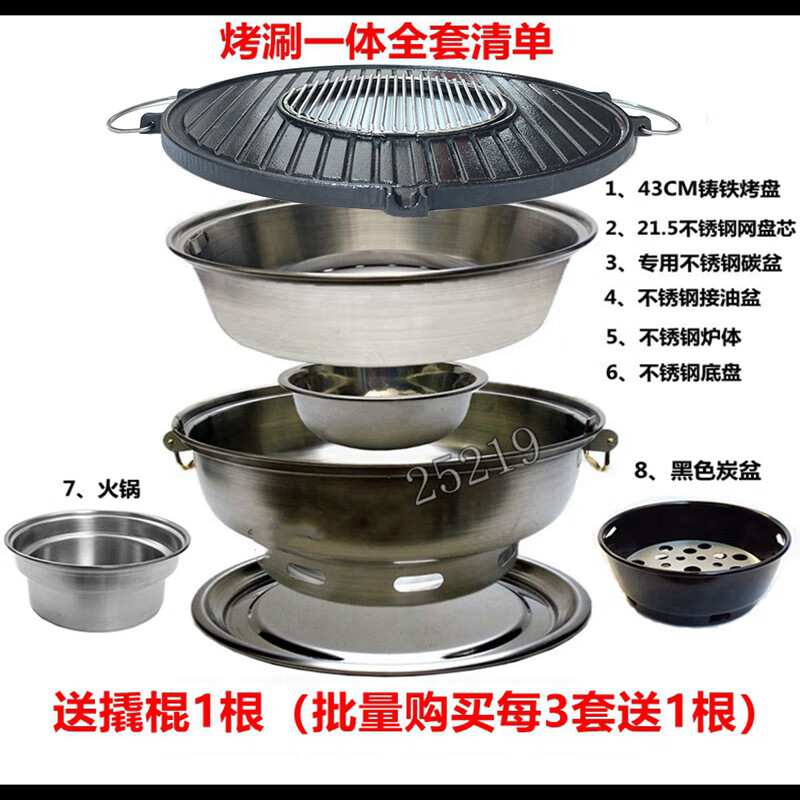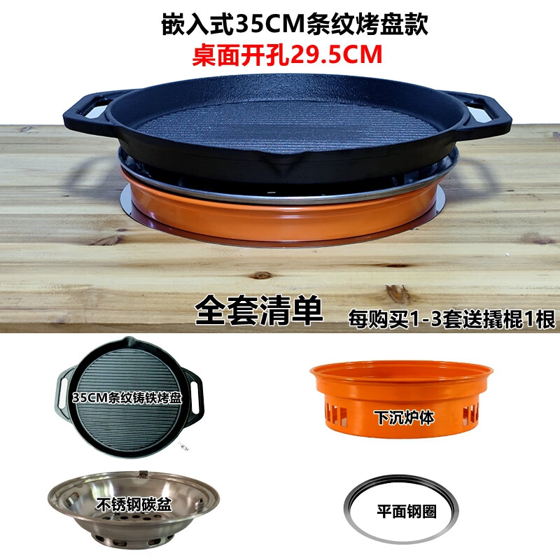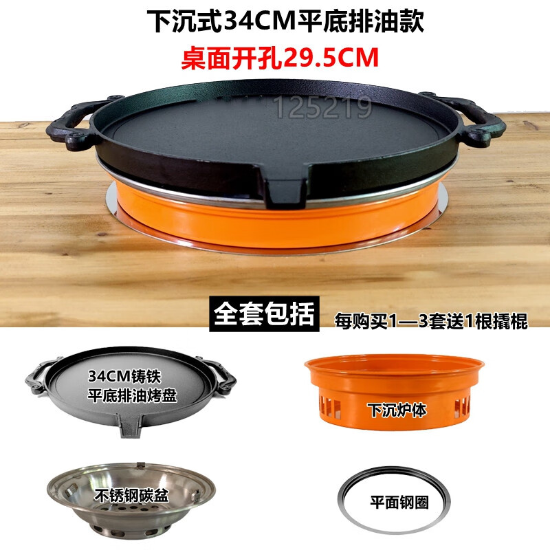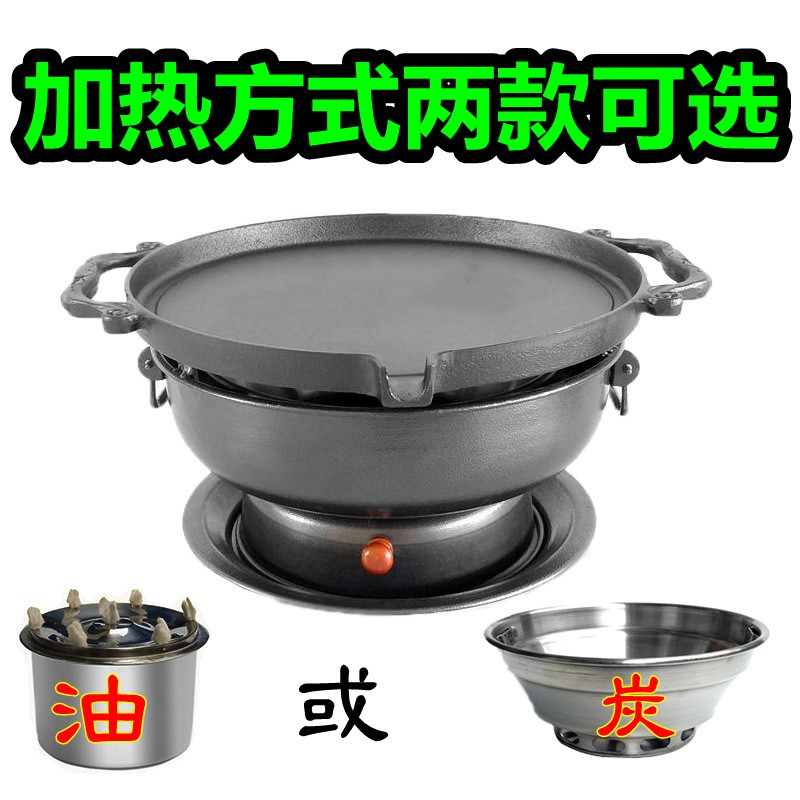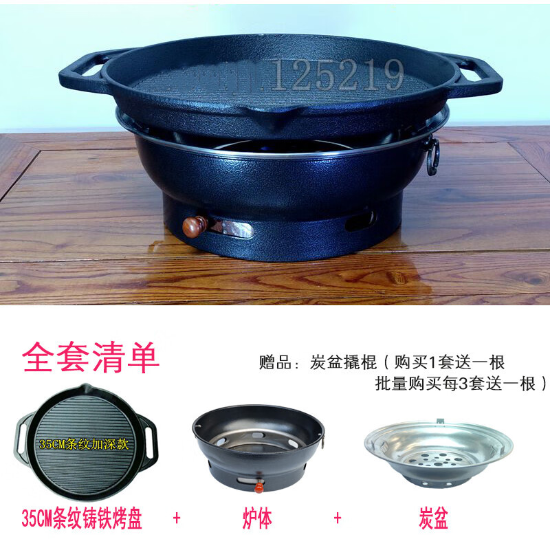 喜奈仕传统复古烤盘老北京炙子烤肉炉韩式烧烤炉无涂层漏油烤炉 34CM复古加深款+碳炉 盘深3CM