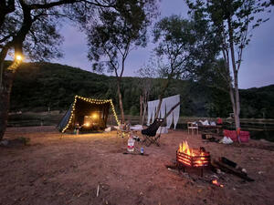 🌦️✨夜晚的篝火,温暖了整个营地!🔥工具非常实用,点燃木材后火焰旺盛,温度刚刚好。和家人朋友一起,享受这难得的宁静时光!🍬👍