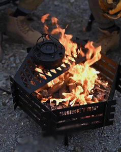 山之客(MOUNTHIKER) 焚火台 户外露营野营烧火架子便携可折叠不锈钢六角烧烤架 新款六角焚火炉