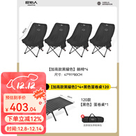 原始人户外折叠椅便携式钓鱼椅月亮椅野餐躺椅懒人椅休闲椅露营椅子 黑色桌椅套【一桌四椅】