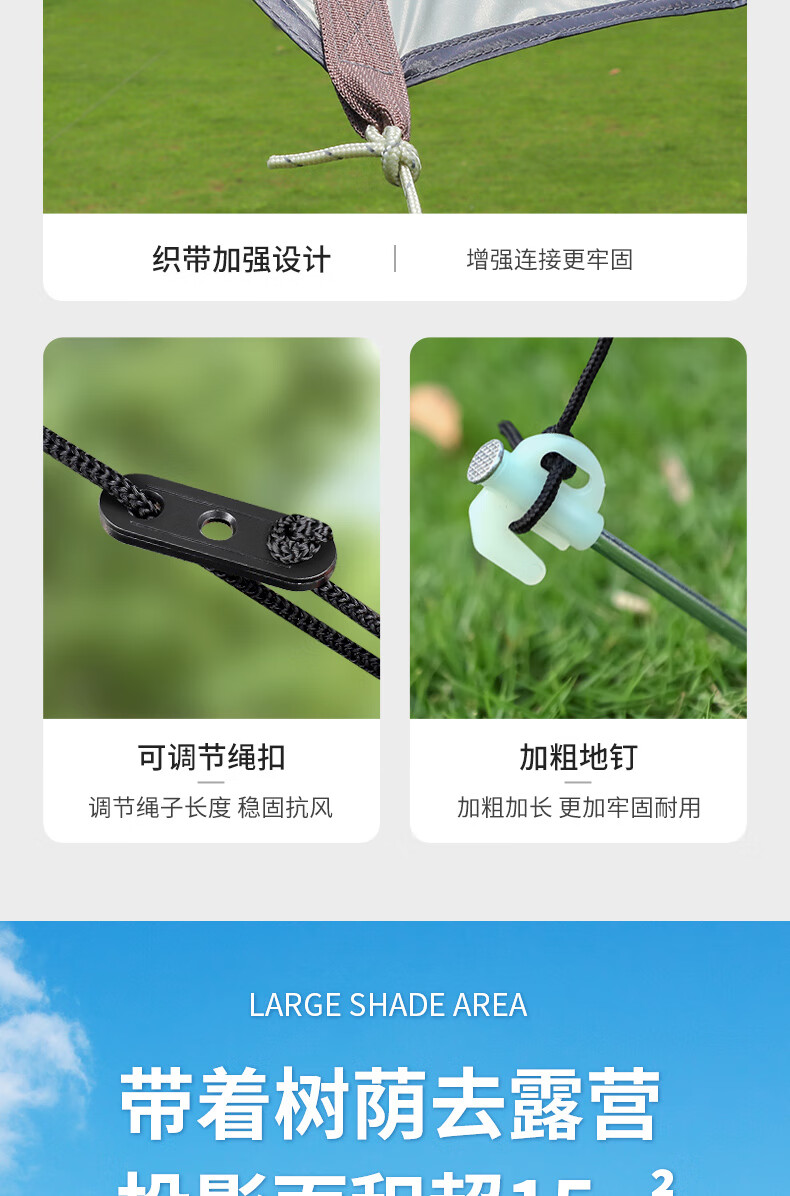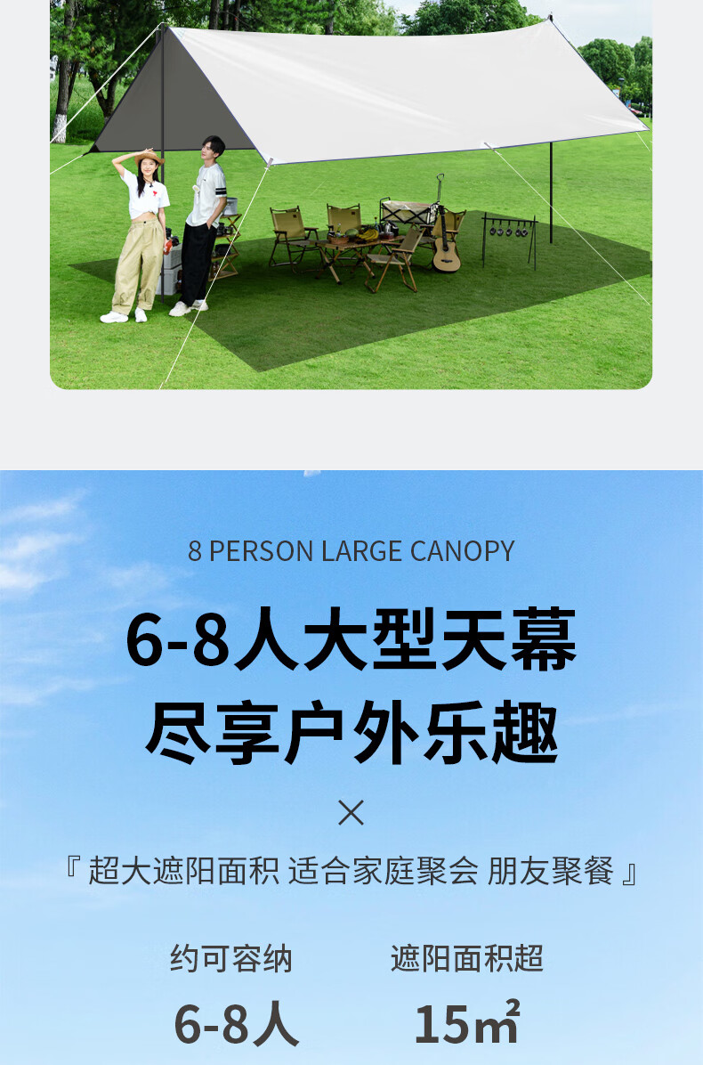 这款户外帐篷真是太棒了!不仅防晒遮阳效果好,而且超大面积非常实用👍 材质也很有质感,安装简单,特别适合一家人外出露营使用。希望以后能有更多颜色的选择!