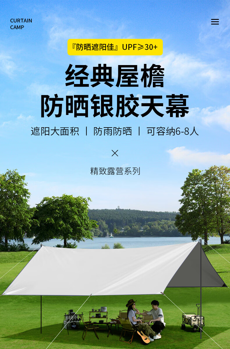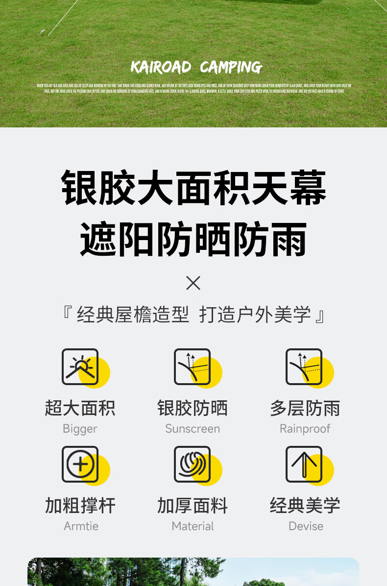 凯路德(KAIROAD)天幕户外露营防晒防雨大空间野外公园游玩超大遮阳棚银胶帐篷 【4-8人】遮阳防晒丨12㎡