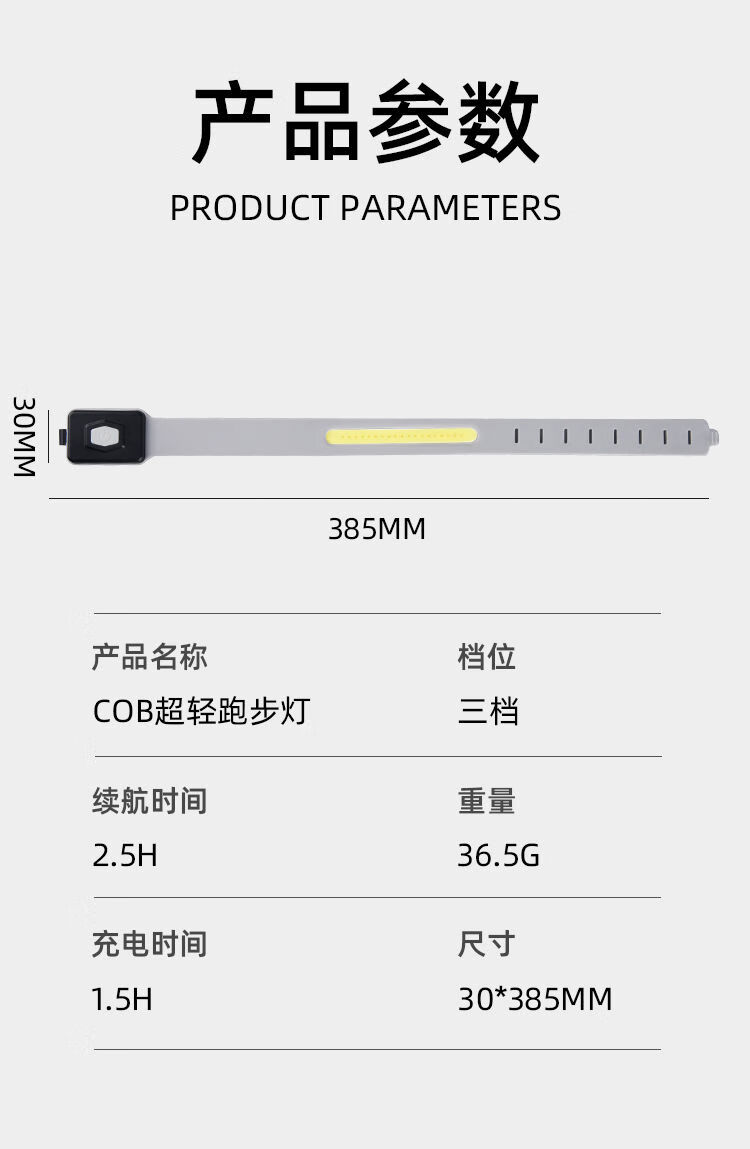 三栖虎夜跑灯手臂带led发光臂带usb充电夜跑警示灯跑步夜光手臂灯 高亮