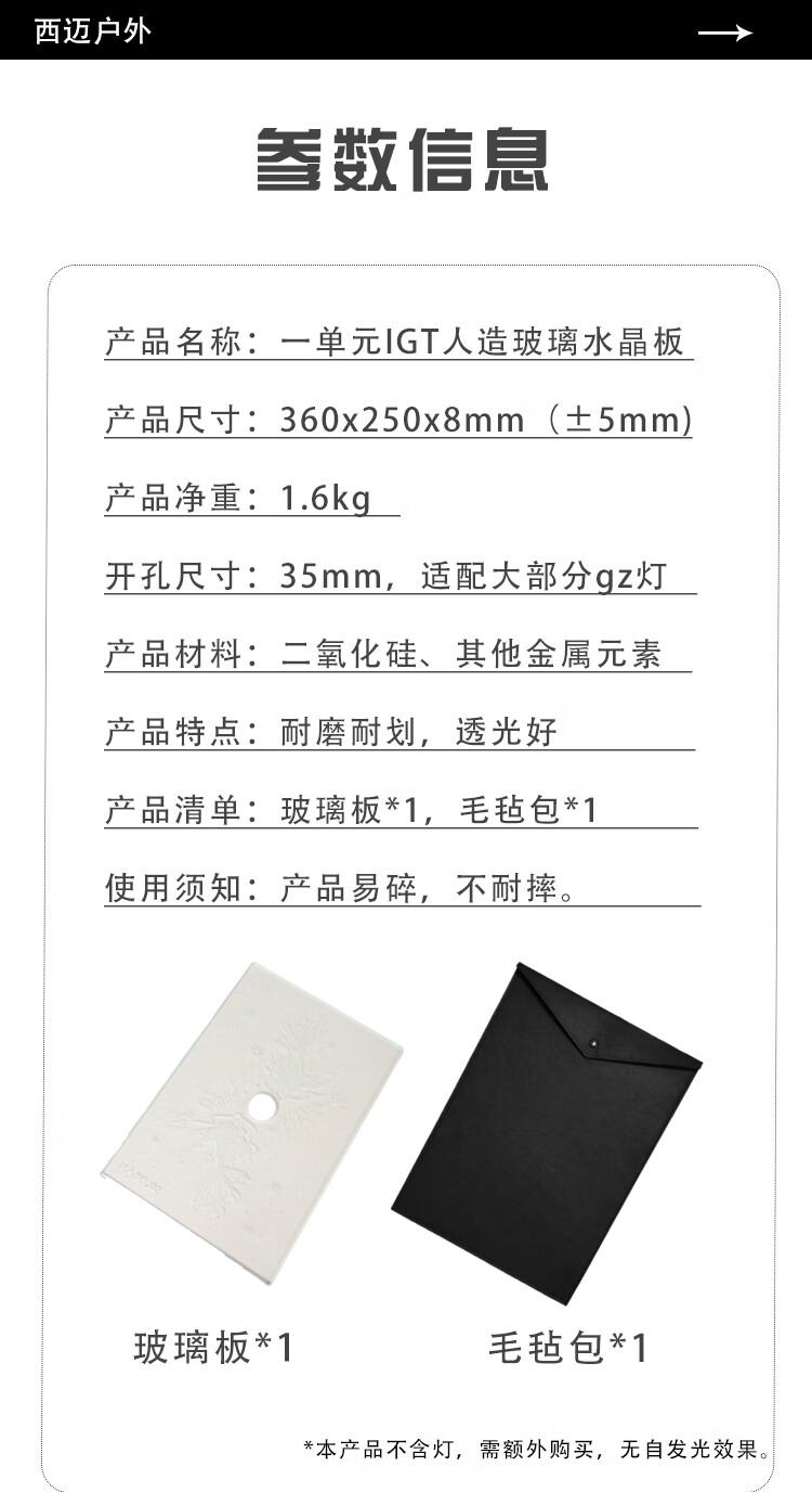 西迈IGT单元板一单元水晶发光板户外露营GZ灯氛围桌板露营桌配件 黄道十二生肖(有灯孔)