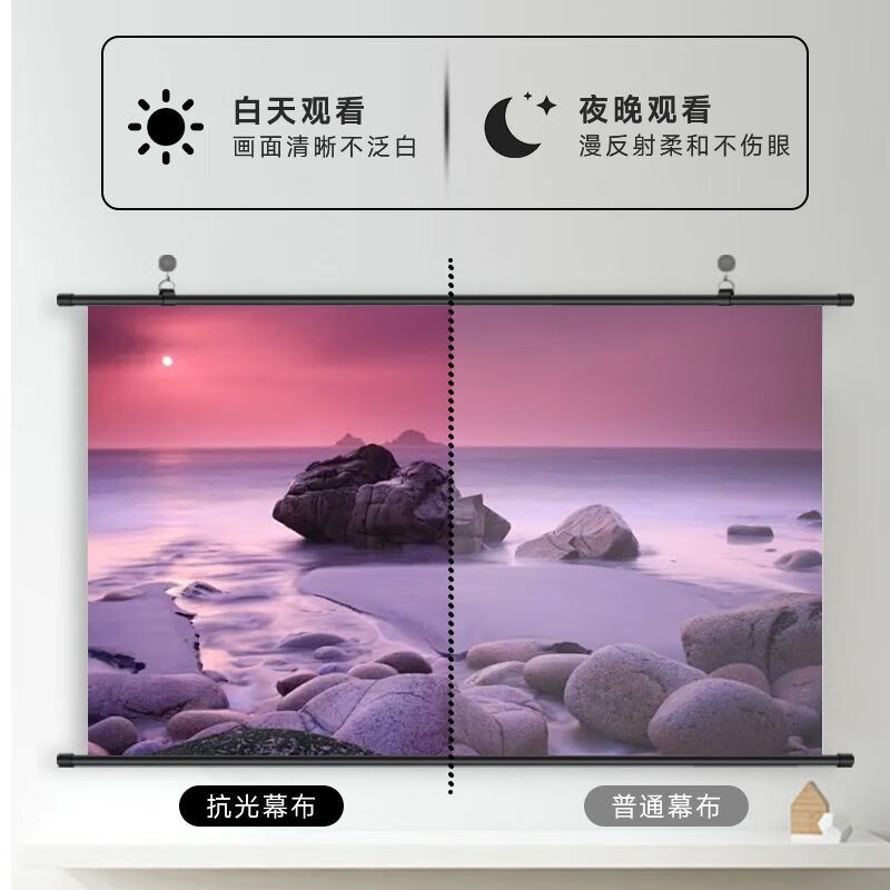 鲸米(JINGMI)4K手拉自锁投影幕布家用办公抗光高清壁挂电影激光简易便携金属白玻纤投影仪无需电源手动升降 银河系丨高清灰玻纤S6手拉幕 100英寸4:3