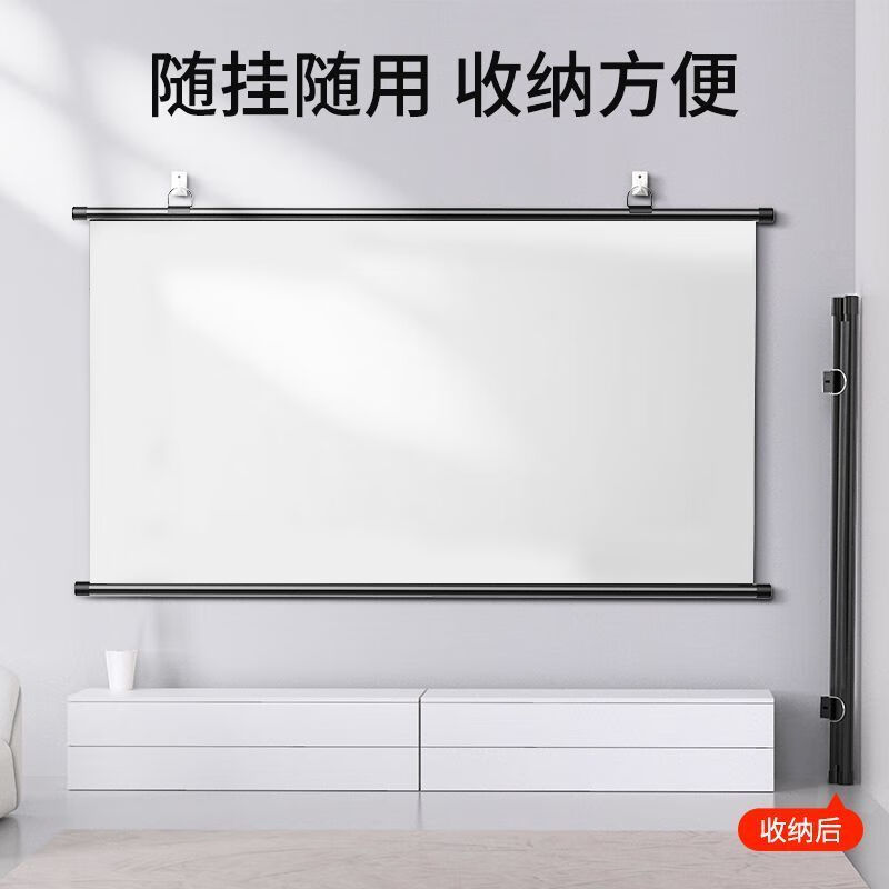 TKHE车载投影仪幕布便携户外车内宿舍投影幕布30寸40寸50寸60寸简易壁挂幕布移动免打孔可移动挂环高清 40寸43车载壁挂幕送幕盒 高清纳米白玻纤