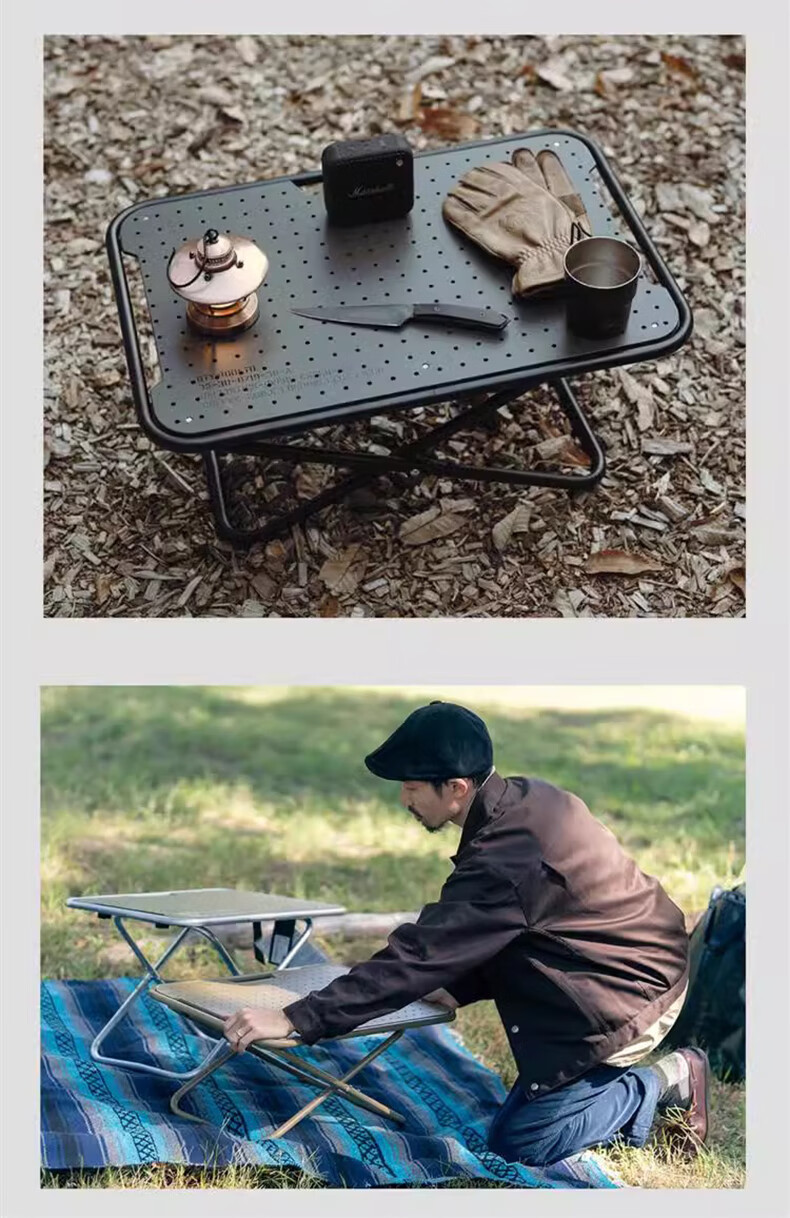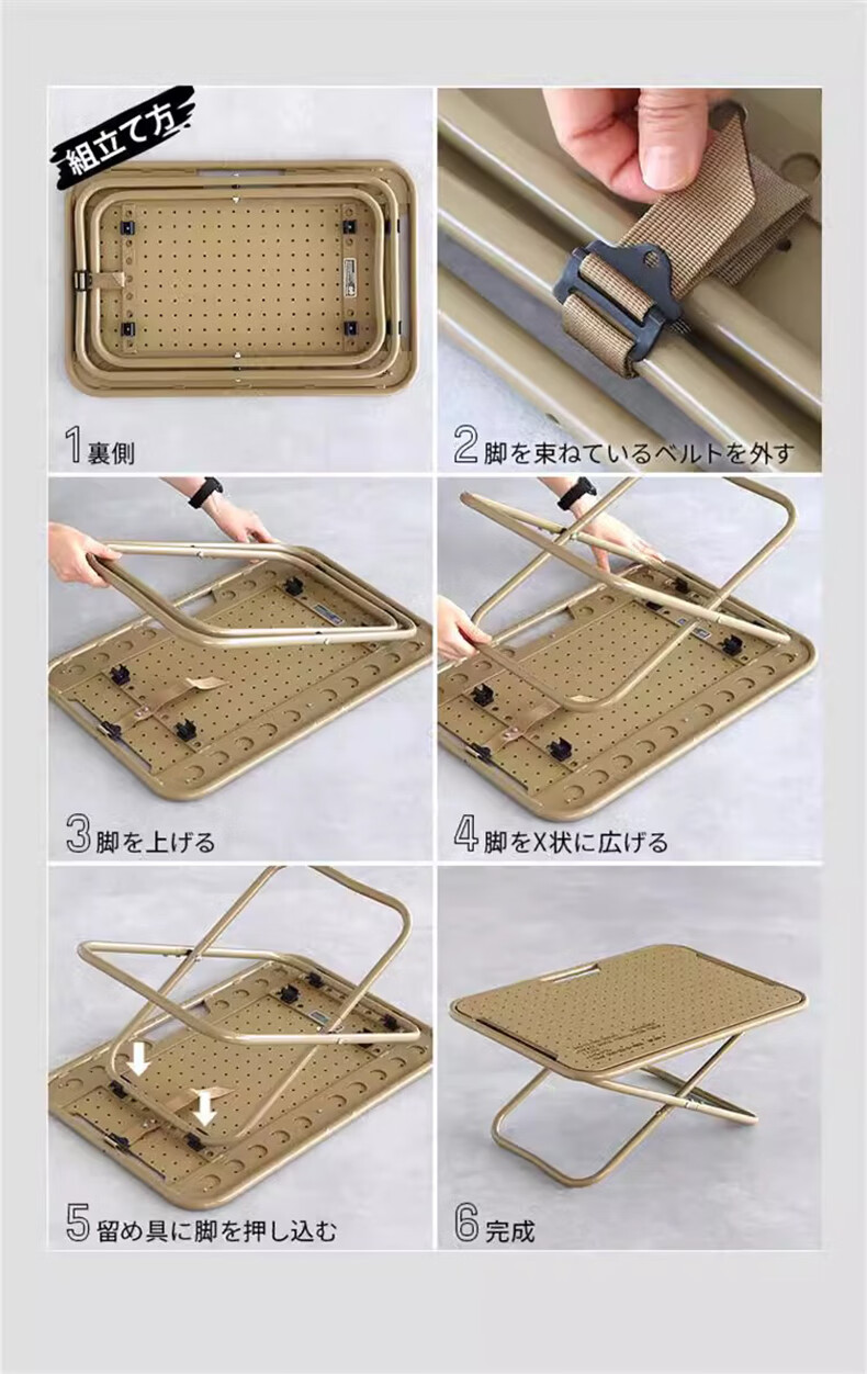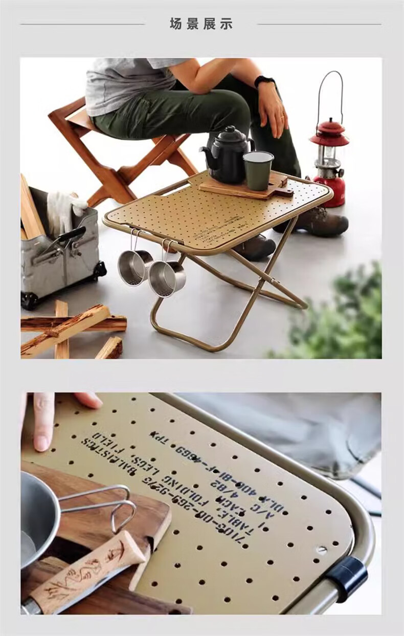 BALLISTICS日本原装M16户外战术风露营折叠桌轻量化快折桌小茶几 银色×OD穿孔顶板