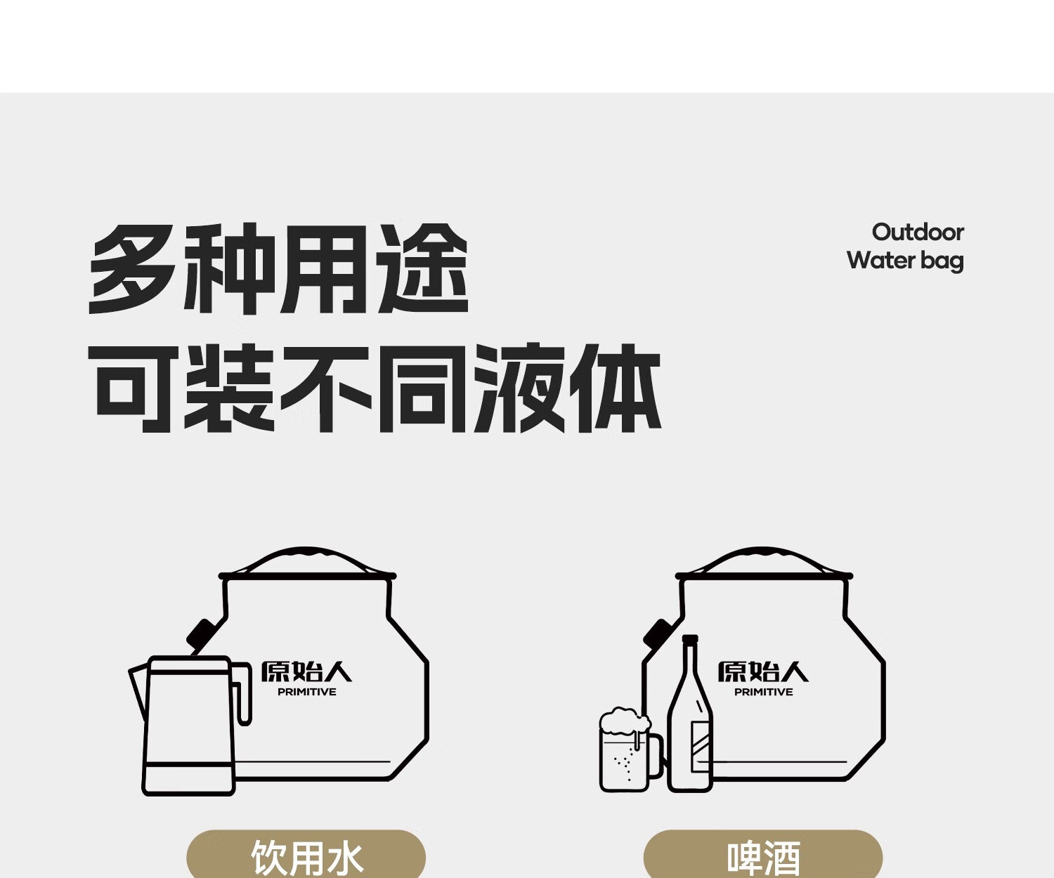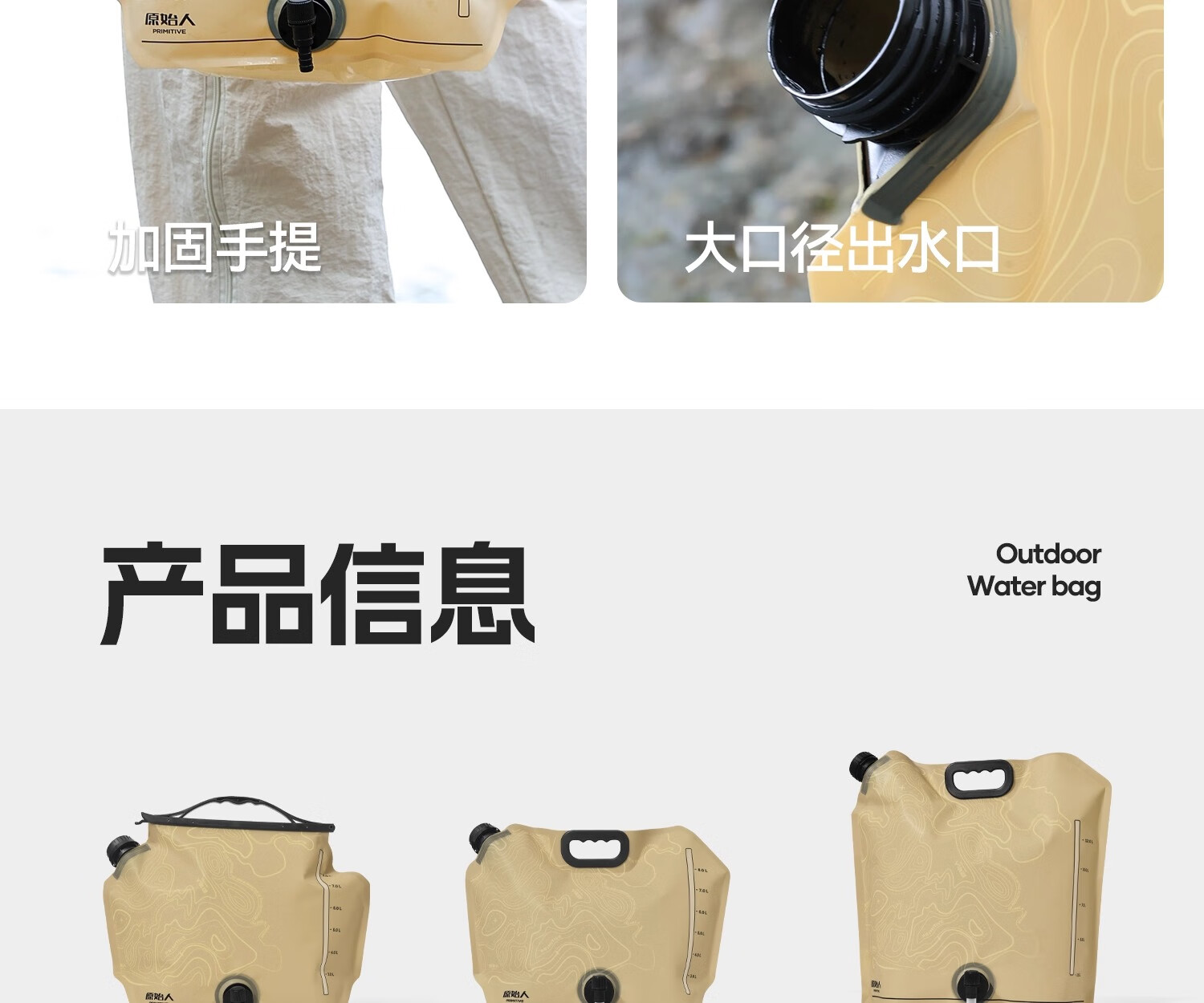 这款原始人户外便携折叠水袋真是太棒了!大容量设计完全满足露营需求,食品级材质用着安心。三层加厚让水袋更耐用,无异味这点特别重要。带龙头设计取水方便,大开口注水也超轻松。卡其色外观简约大气,折叠起来小巧便携,不占空间。户外露营储水必备神器,强烈推荐给大家!