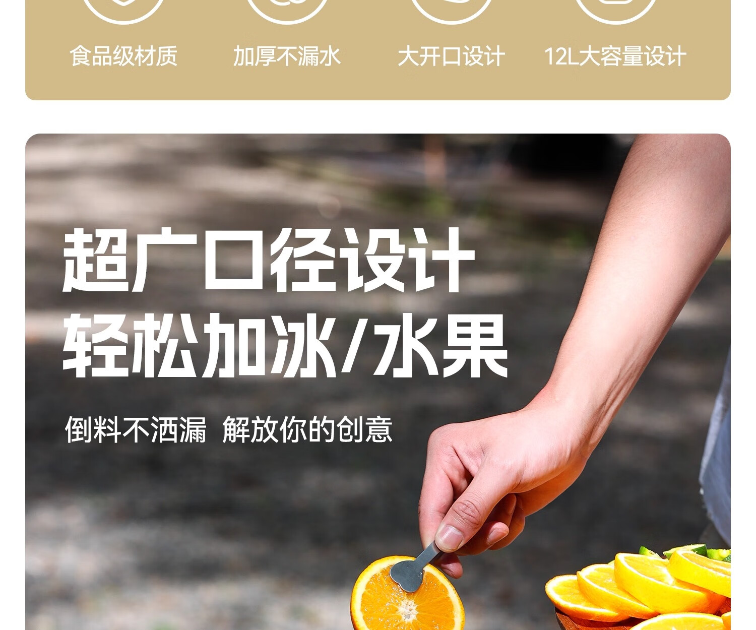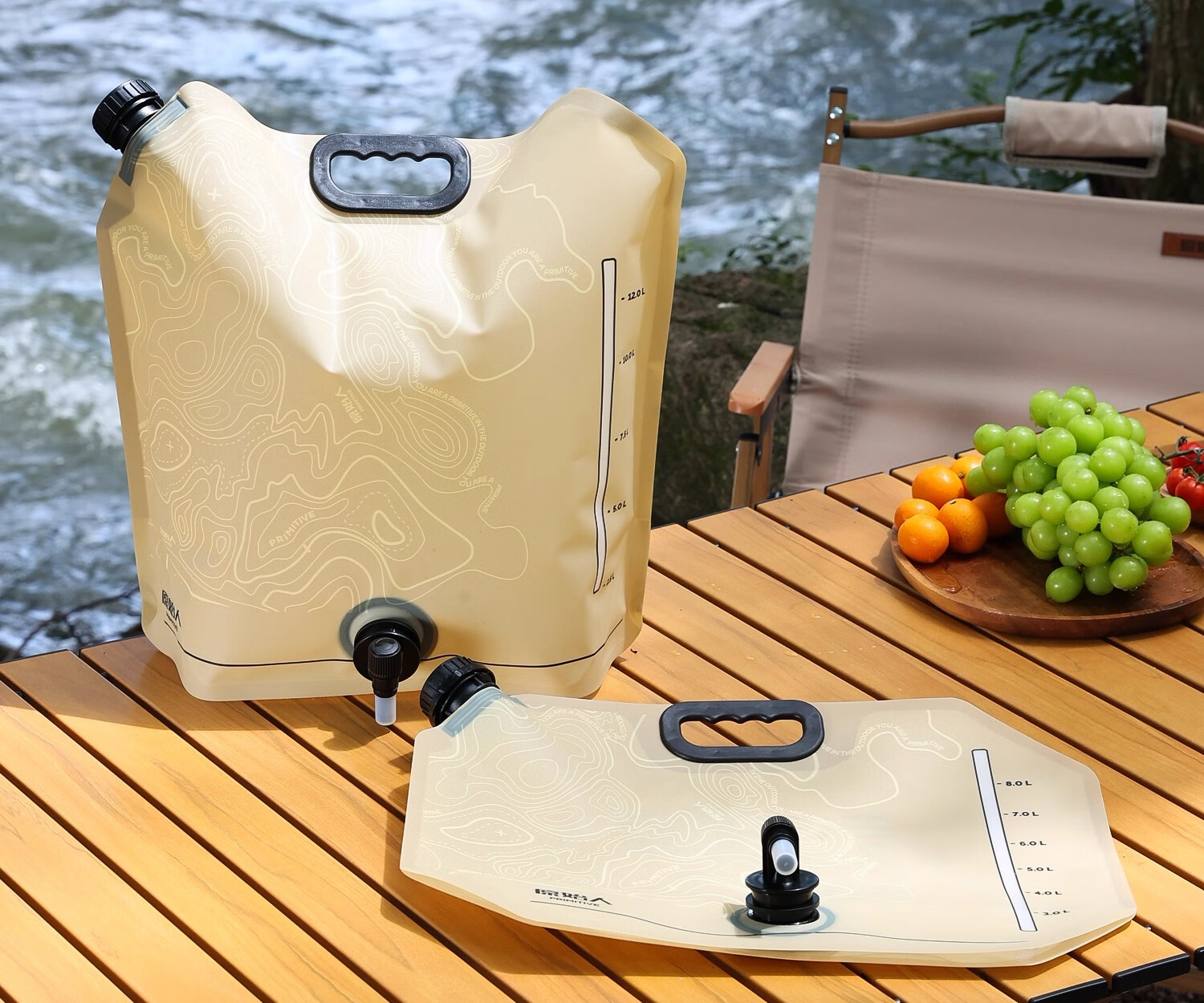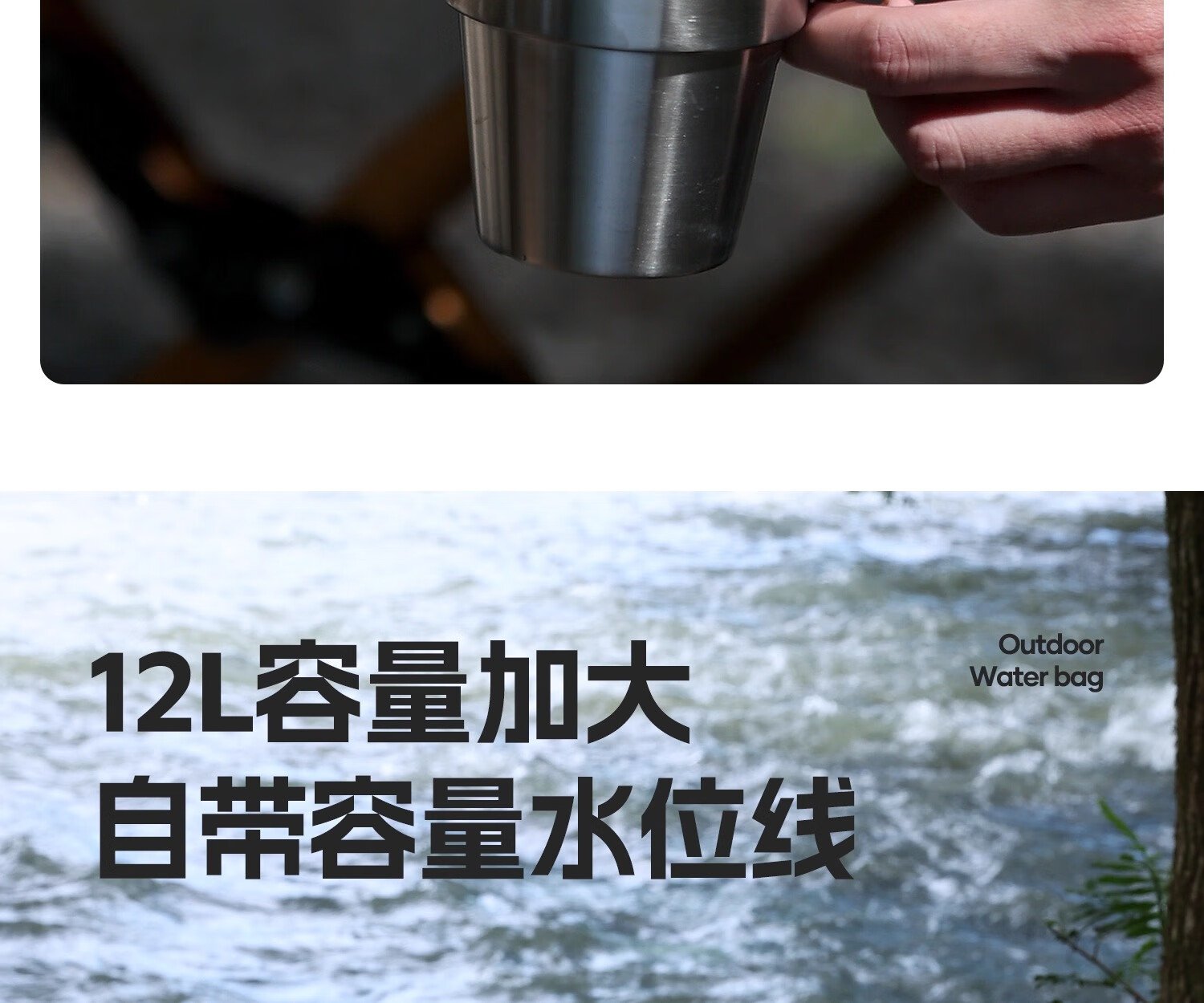 原始人户外便携折叠水袋大容量软装露营装备储水袋食品级带龙头大开口 12L加大款卡其色【三层加厚】